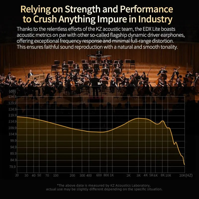 Thanks to the relentless efforts of the KZ acoustic team, the EDX Lite boasts acoustic metrics on par with other so-called flagship dynamic driver earphones, offering exceptional frequency response and minimal full-range distortion. This ensures faithful sound reproduction with a natural and smooth tonality.