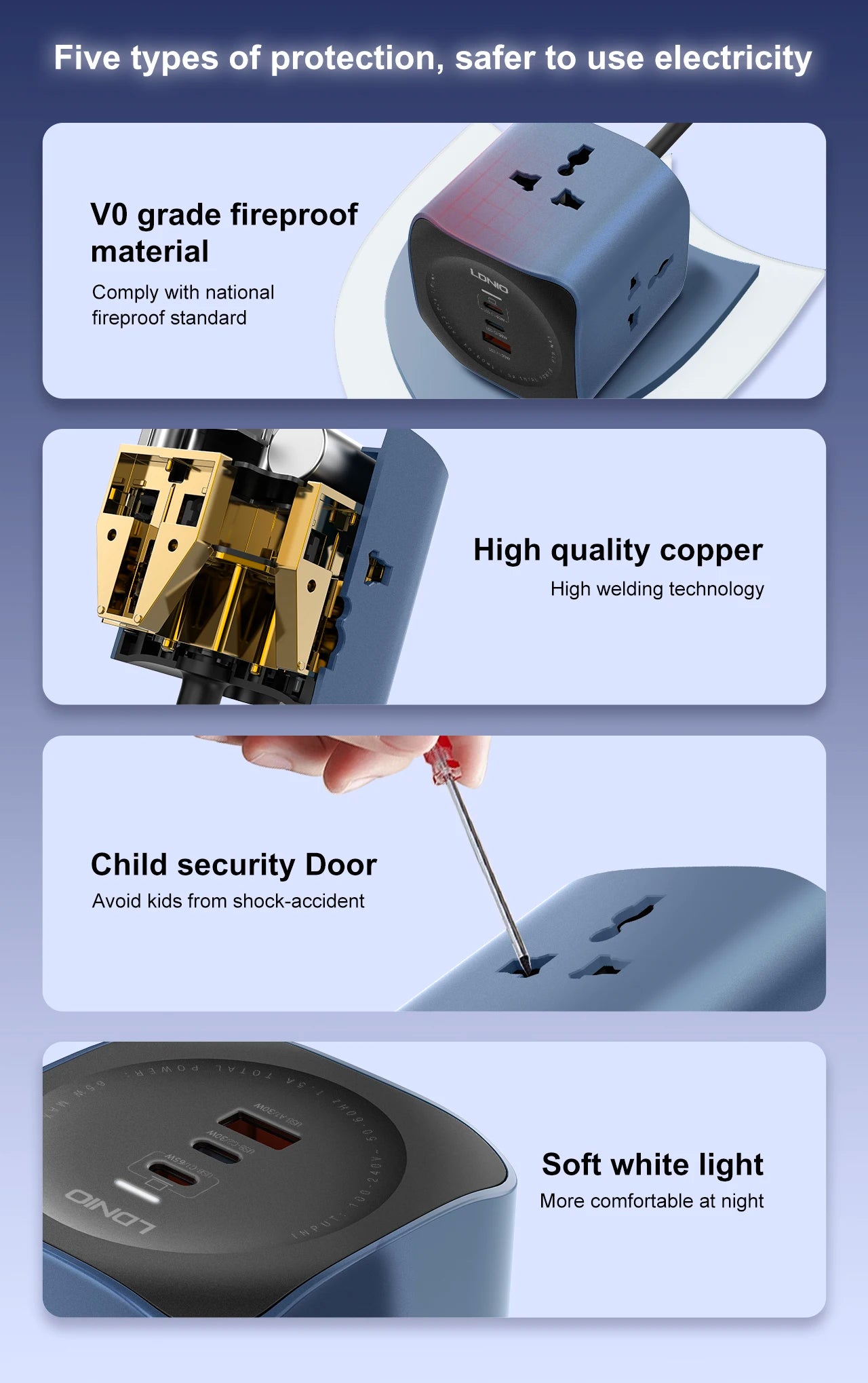 LDNIO Cube Power Strip 65W Charging Stations 2M Electric Extension Power Cord Uk Us Eu Plugs Adapter