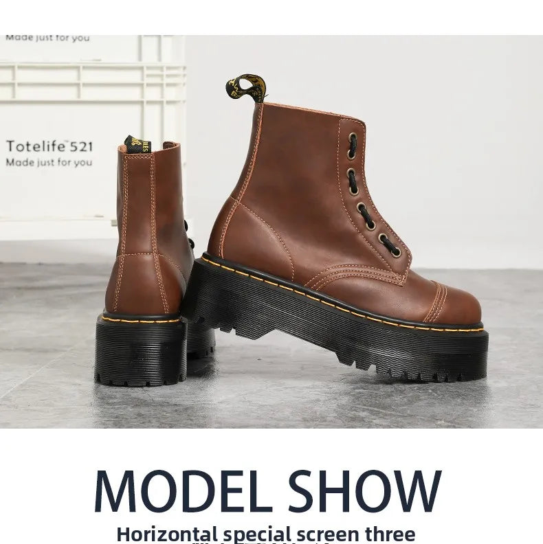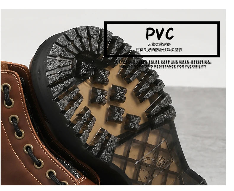 - Materials: Upper: genuine leather; Shaft: split leather; Insole: PU; Outsole: TPR
