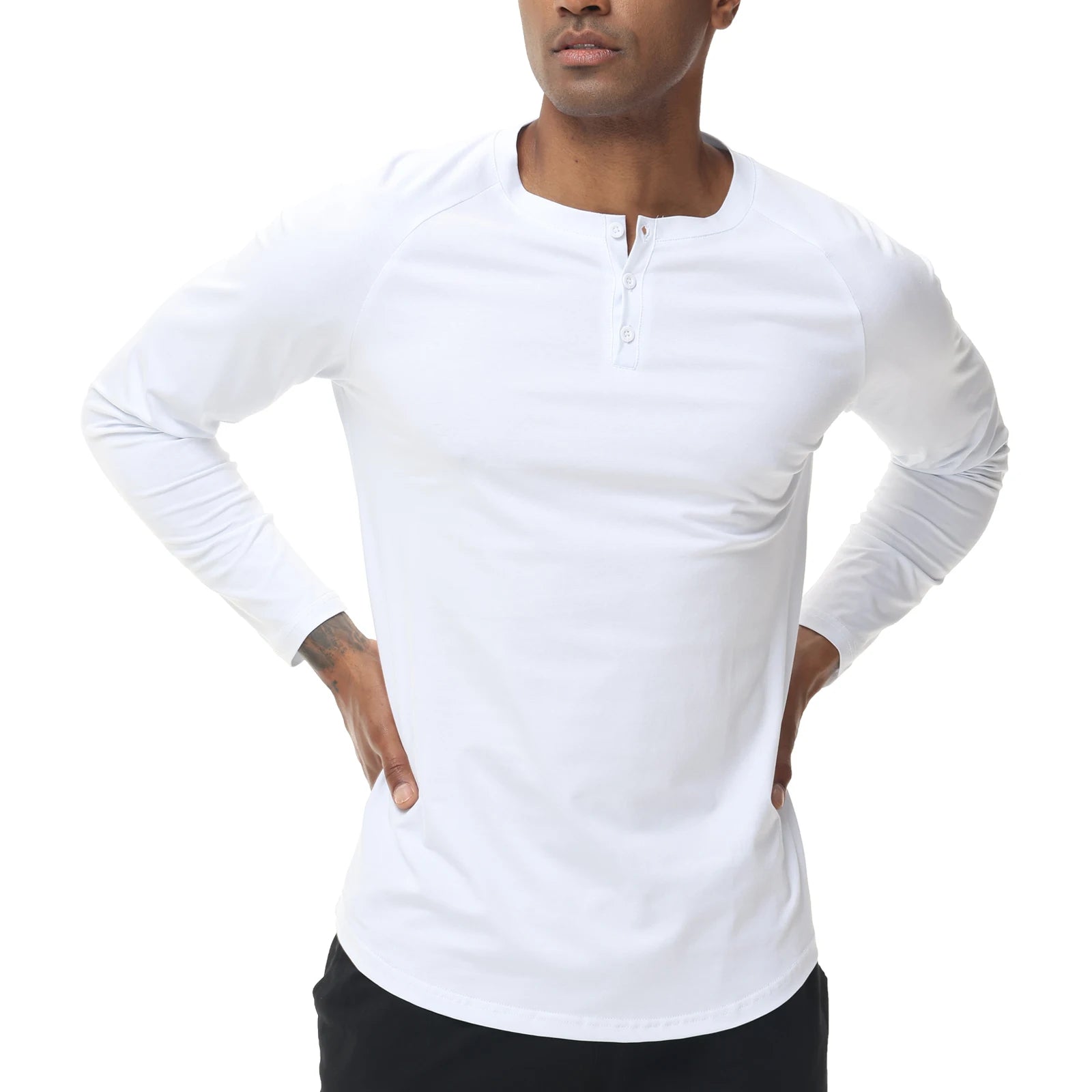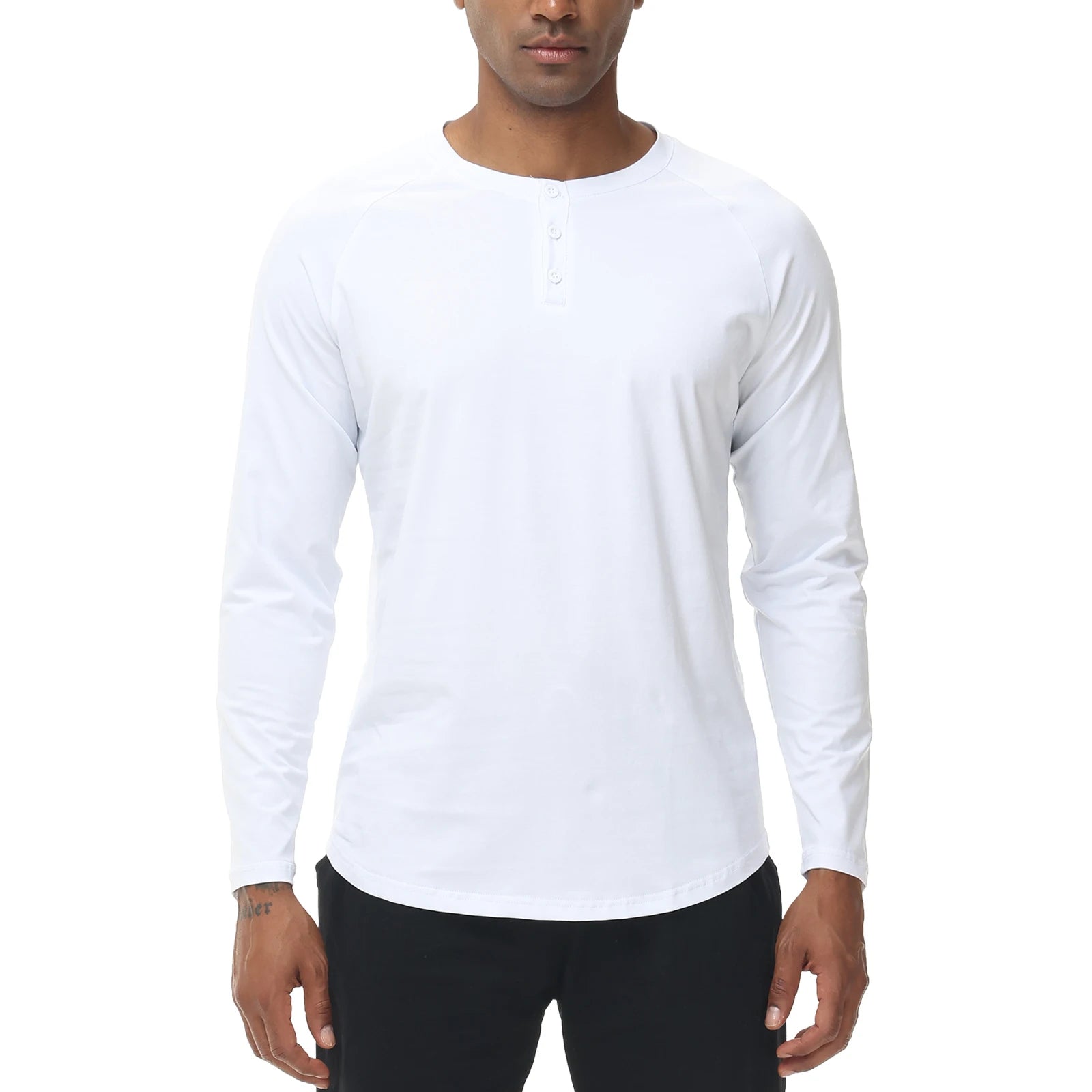 Men's Long Sleeve Button Down T-Shirts Autumn Henley Collar Casual High Quality Crew Neck Mens T Shirts