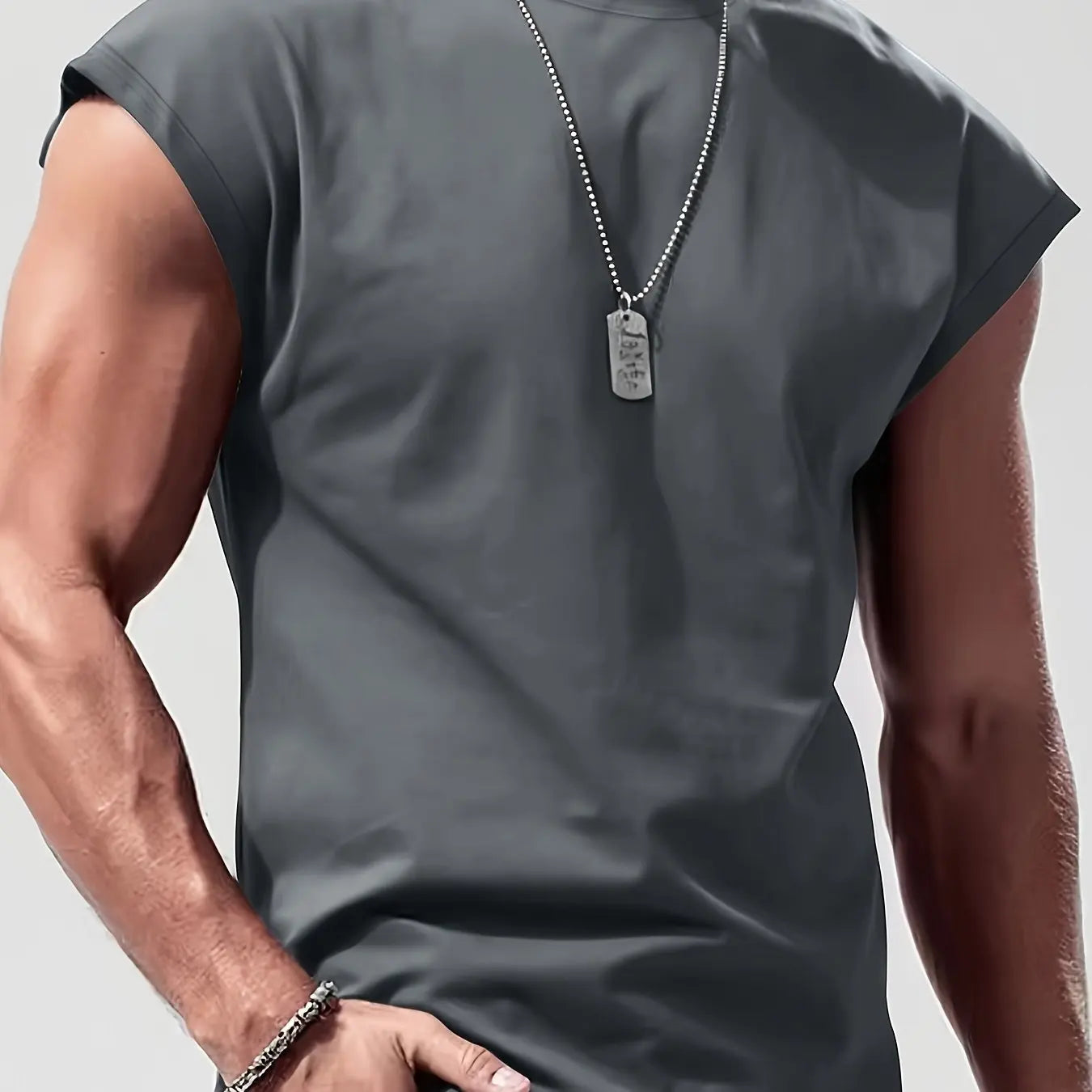 Men'S Summer Solid Color Sleeveless Tank Top Breathable Suitable for Casual Sports Versatile Style