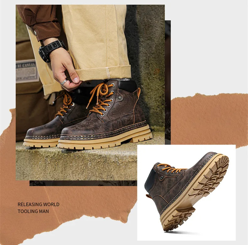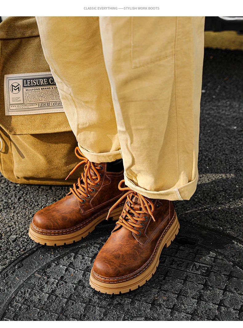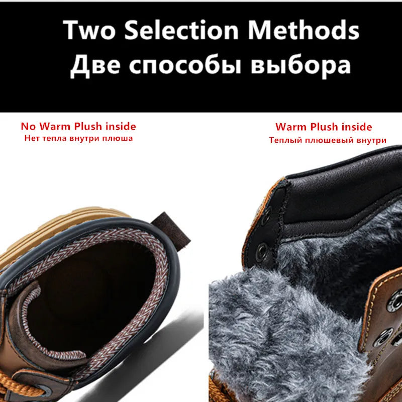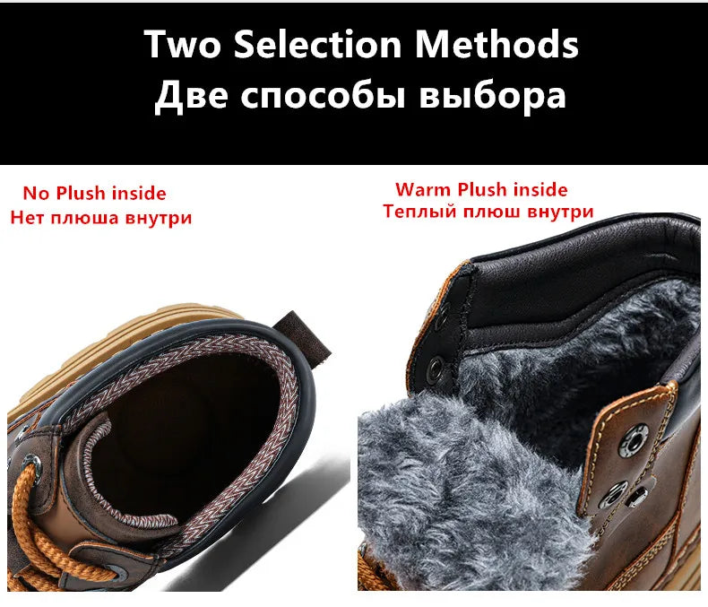 Men's Winter Snow Boots Leather Plush Lining Ankle High Lace Up
