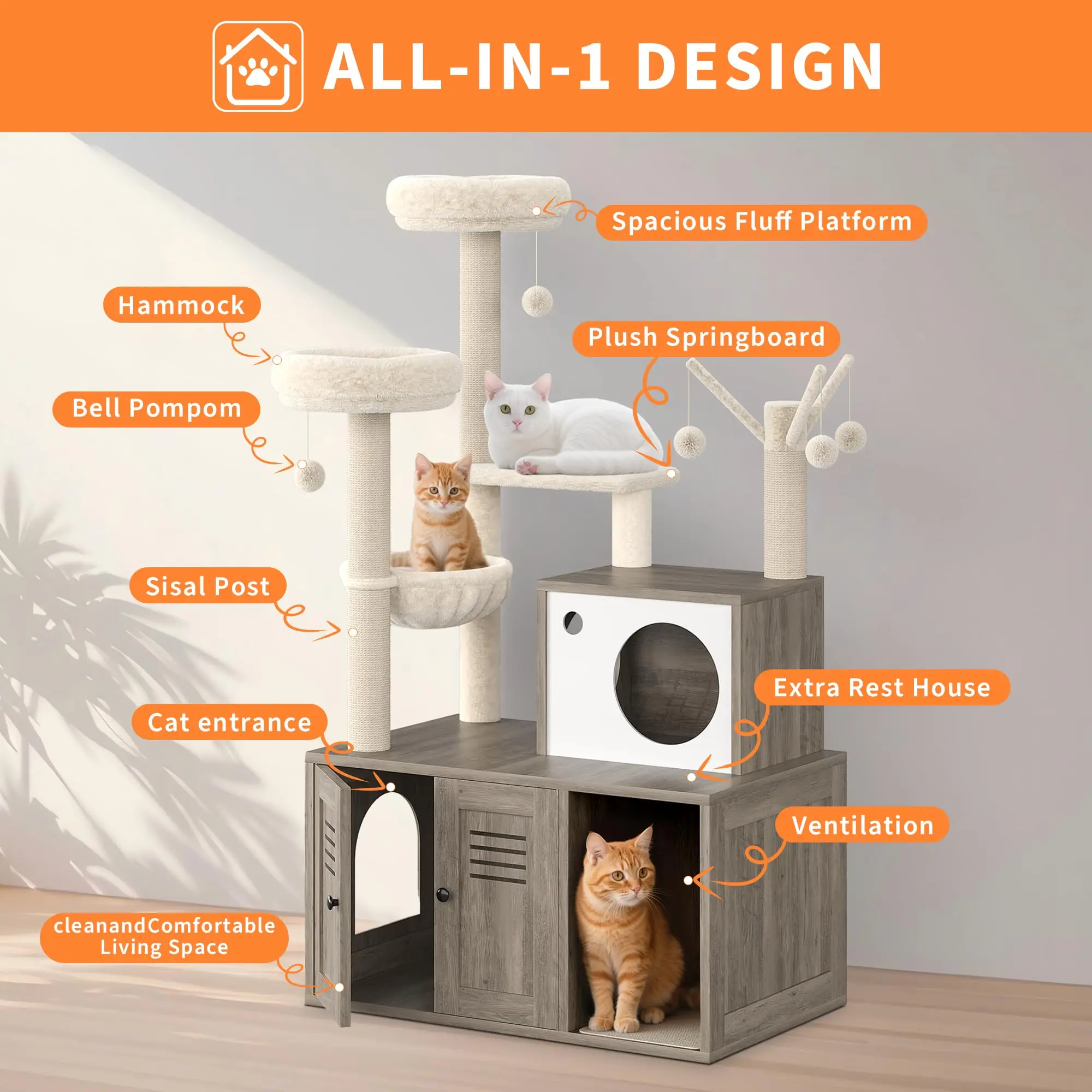 Multi-Level Cat Condo Furniture: All-In-One Cat Condo Furniture with Litter Box Enclosure for Indoor Cats
