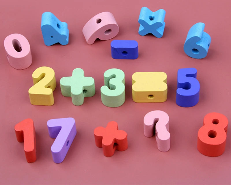 Monterssori Baby DIY Wooden Toys Cartoon Fruit Animal Stringing Threading Wooden Beads Educational Toys for Kids Christmas Gift