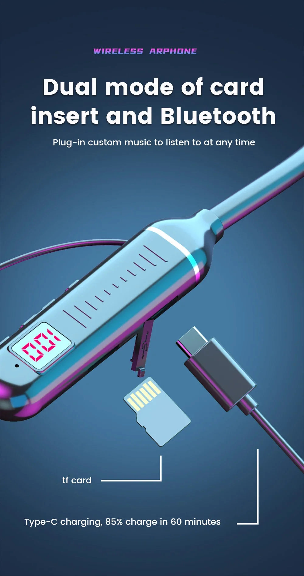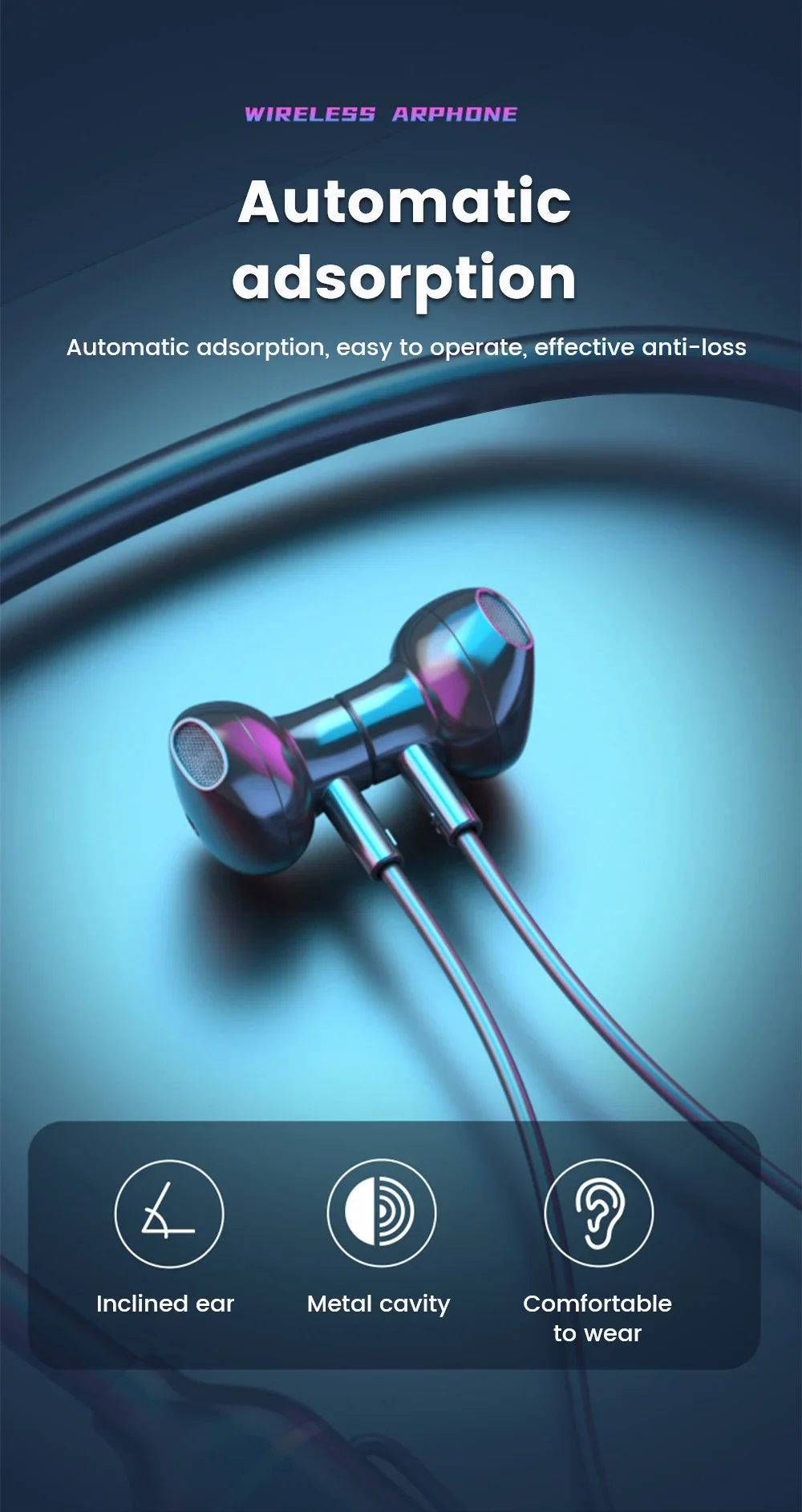 New Bluetooth Earphones Wireless Headphones Magnetic Sport Neckband Neck-hanging TWS Earbuds Wireless Blutooth Headset with Mic