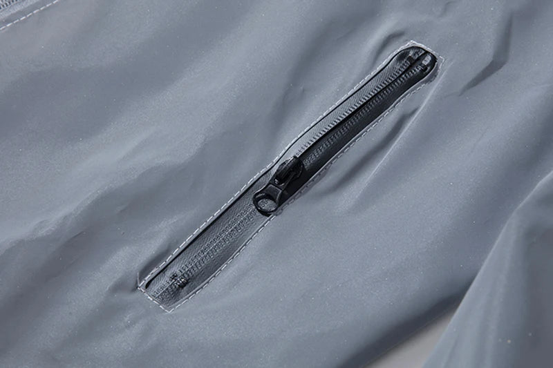 NEW SIZE Night Reflective Jackets Double Fabric Windbreaker Hooded Jacket Men Hip Hop Dancer Waterproof Zipper Coats Outwear