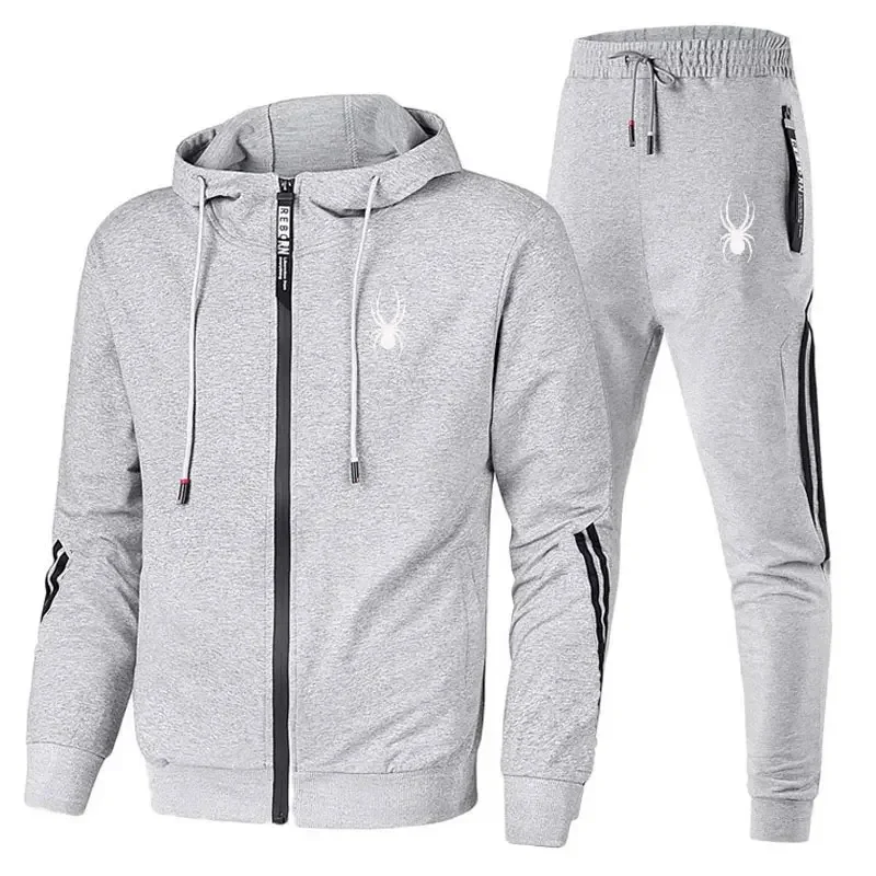 New Spring and Autumn running breathable and fashionable fitness set for men, a two-piece casual zipper jacket and sport pants