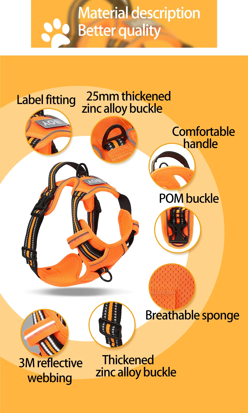 No Pull Dog Harness Front Clip Heavy Duty Reflective Easy Control Handle for Large Dog Walking