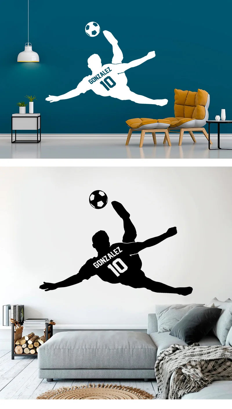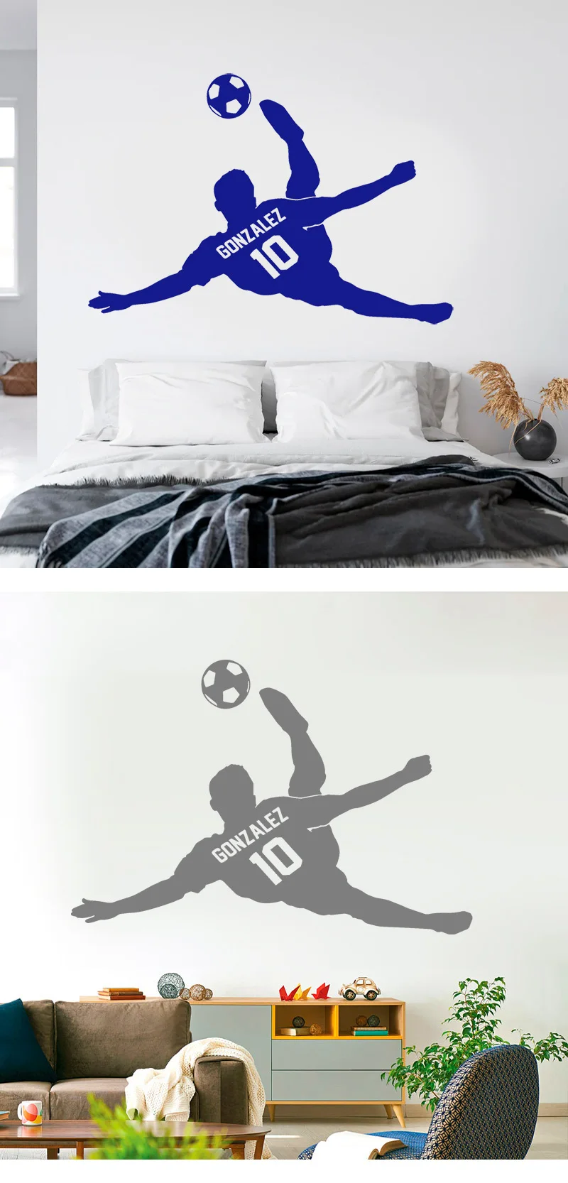 Personalized Soccer Player Name and Number Wall Sticker Vinyl Home Decor Kids Boys Room Bedroom Sport Football Decals Mural 3N01