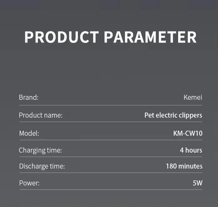 This professional rechargeable pet hair clipper is designed for efficient and precise grooming of both dogs and cats. Equipped with stainless steel precision blades, it works on all hair types while preventing clogging and jamming.