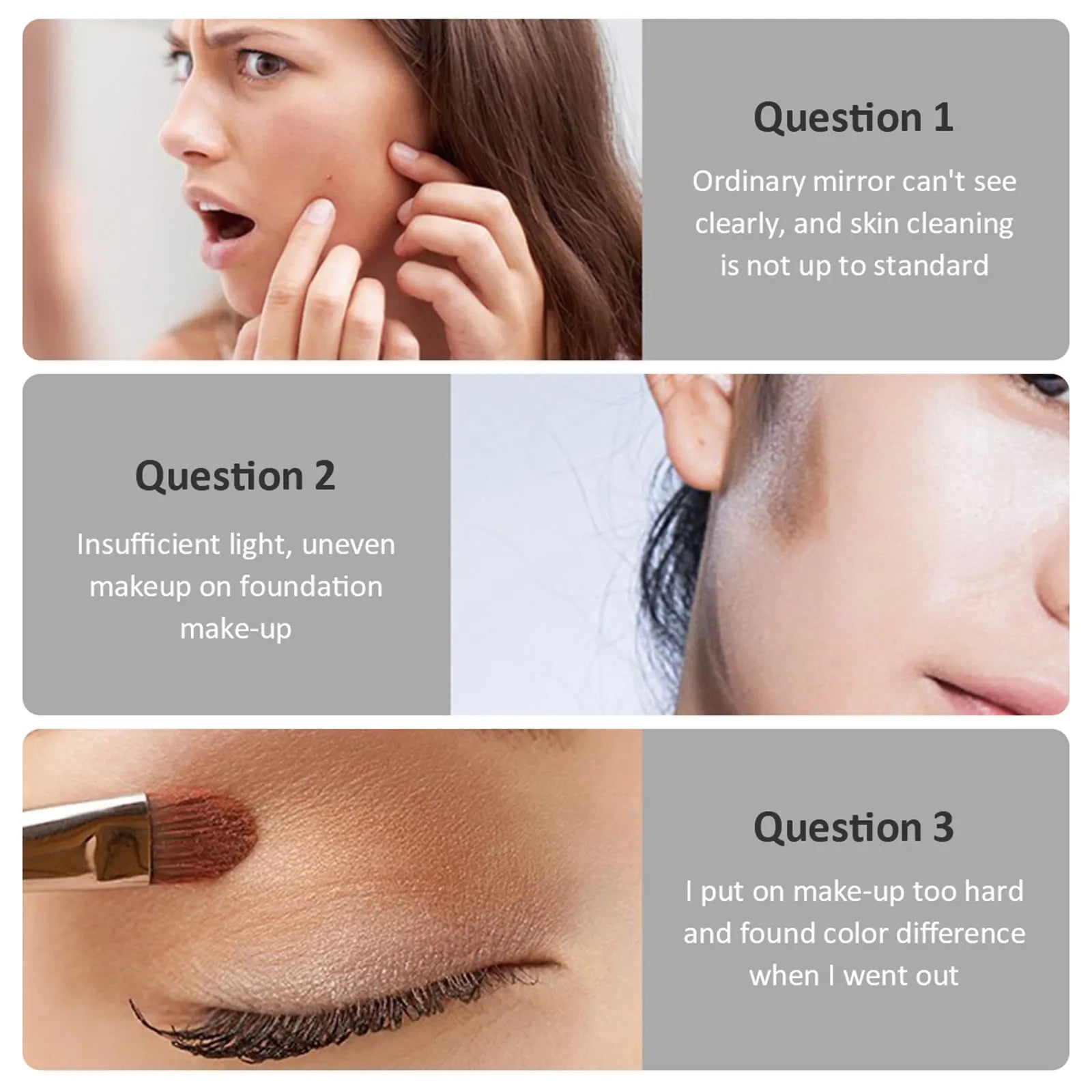 Use cases include skincare, grooming, and quick makeup tasks under varying lighting conditions. The neutral finish and compact size suit desks, countertops, and vanity areas.