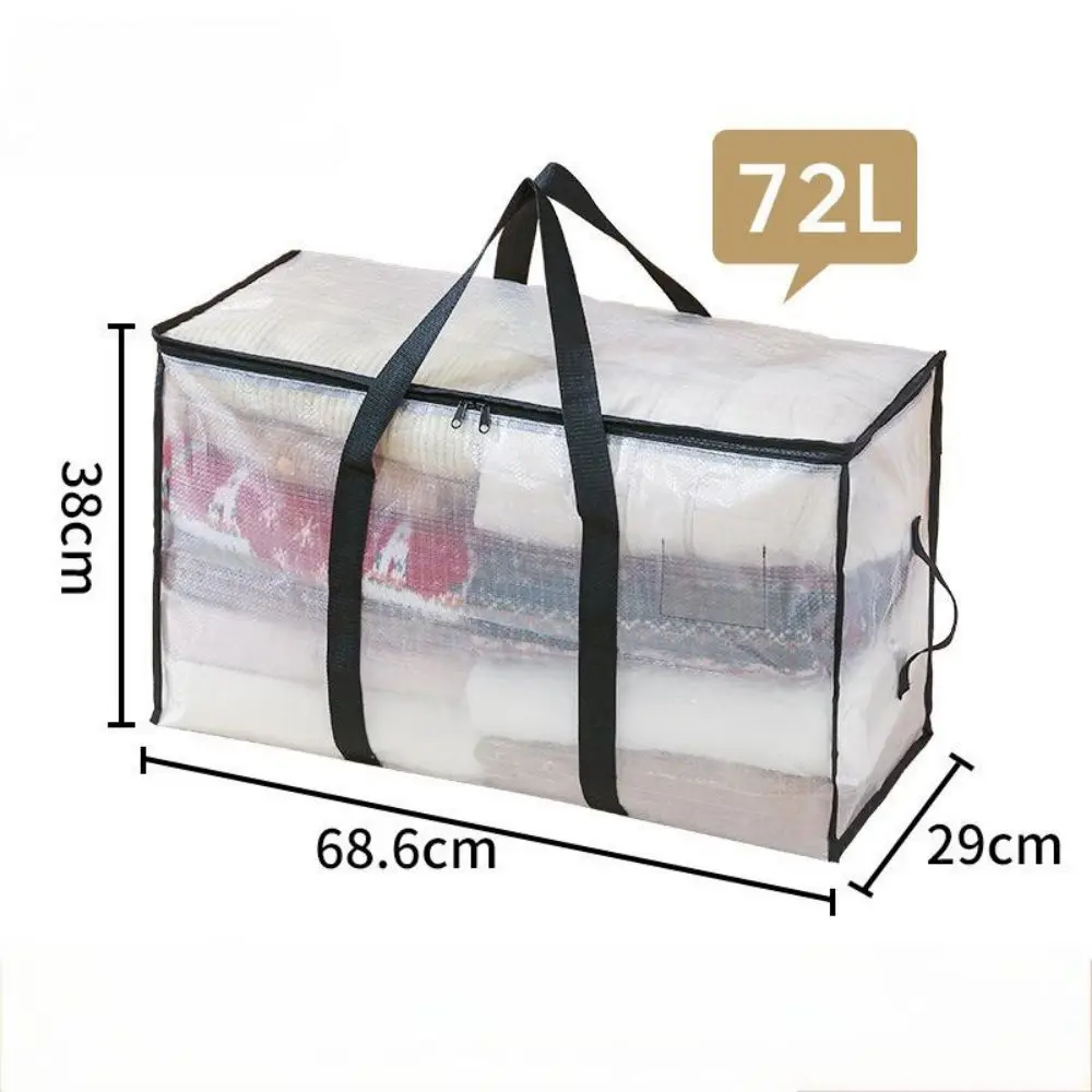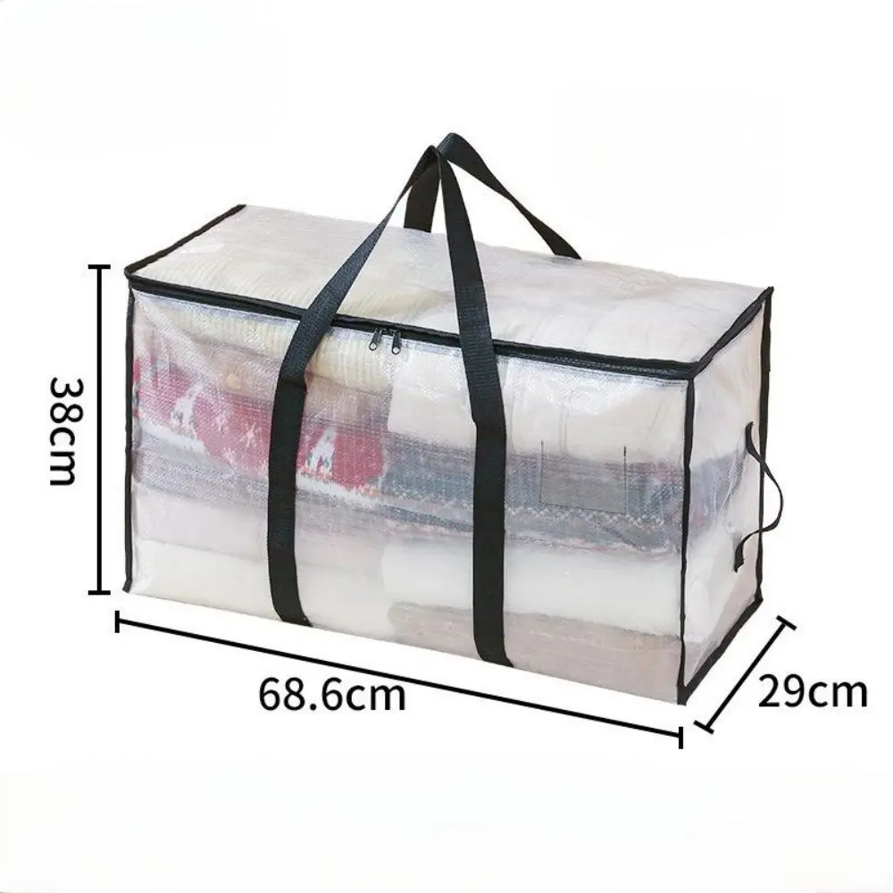 Quilt Organizer Bag Foldable Transparent Large Capacity Woven Closet Sort Waterproof Double Zipper Portable Storage for Clothes