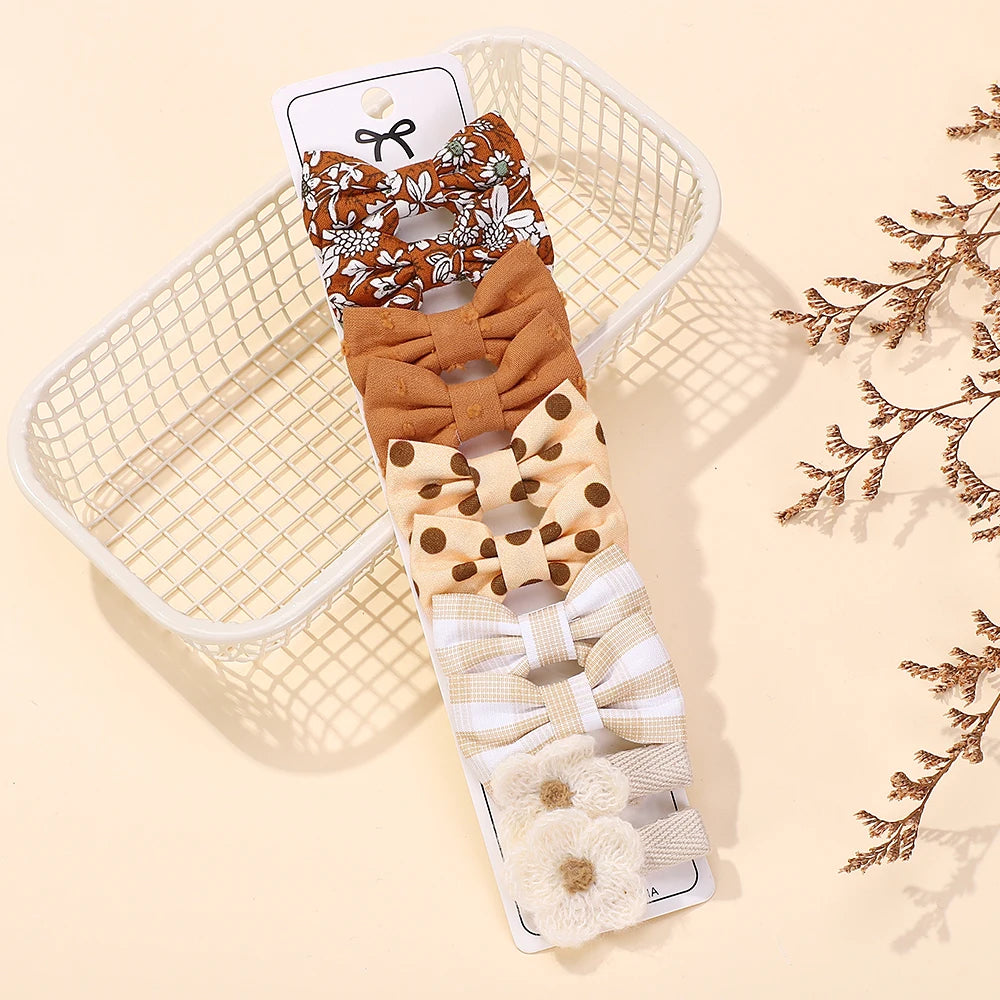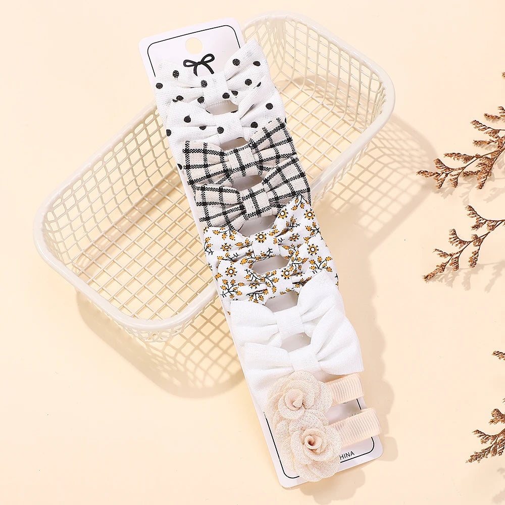 RAINBOW BOWS 10Pcs/set Handmade Fabric Printed Barrette Boutique Mini Bangs Bow Hair Clip Ins Daisy Hairgripes 2025 Spring Style