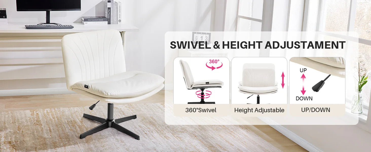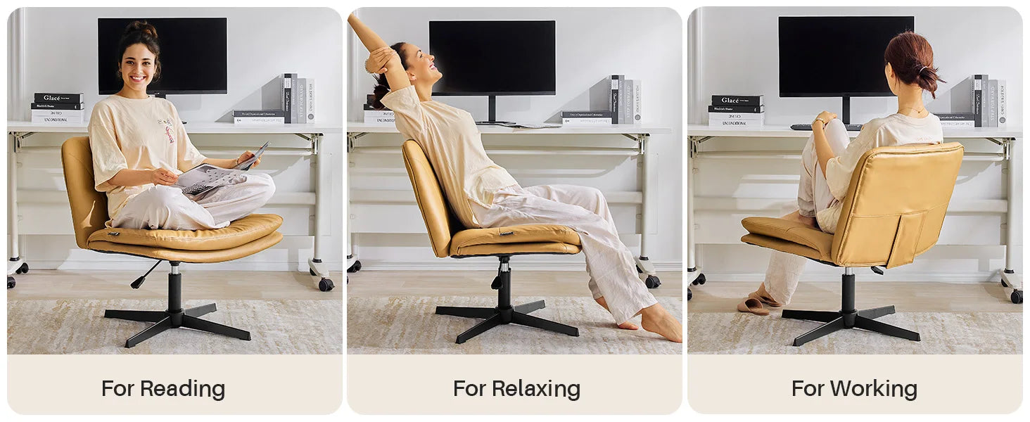 Redlife Criss Cross Chair with Rotating Adjustable Legs Office Chair Durable Pu Leather Wrapped Double Cushion for Home & Office