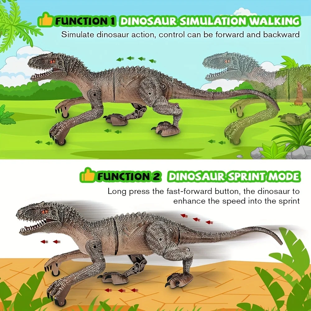 Remote Control Dinosaur Toys Kids RC Electric Walking Jurassic Dinosaur Simulation Velociraptor Toy With LED Light And Roaring