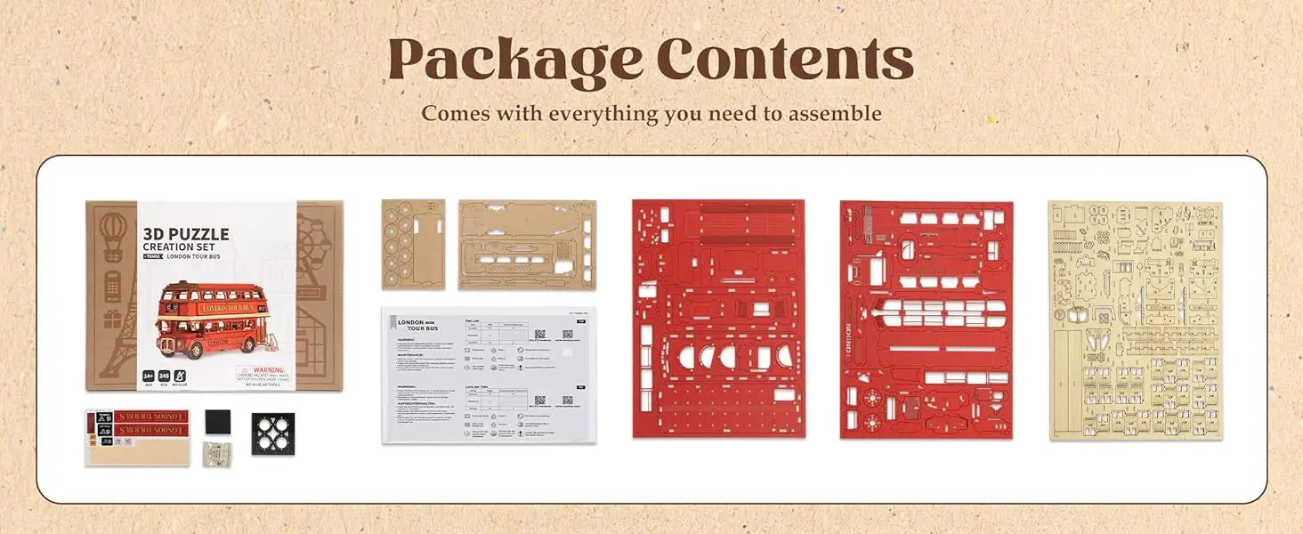 Robotime rolife London Tour Bus 3D Wooden Puzzles Wood Model Toy Car to Build Crafts Collectibles Gifts for Boys Girls