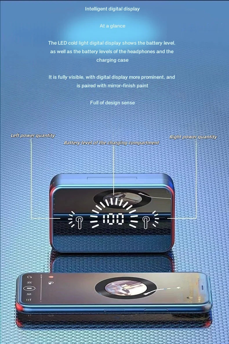S20 Bluetooth Earphone Headphones Mirror Wireless Stereo Headset with Digital DisplayTouch Control Sports Earbuds for Gaming