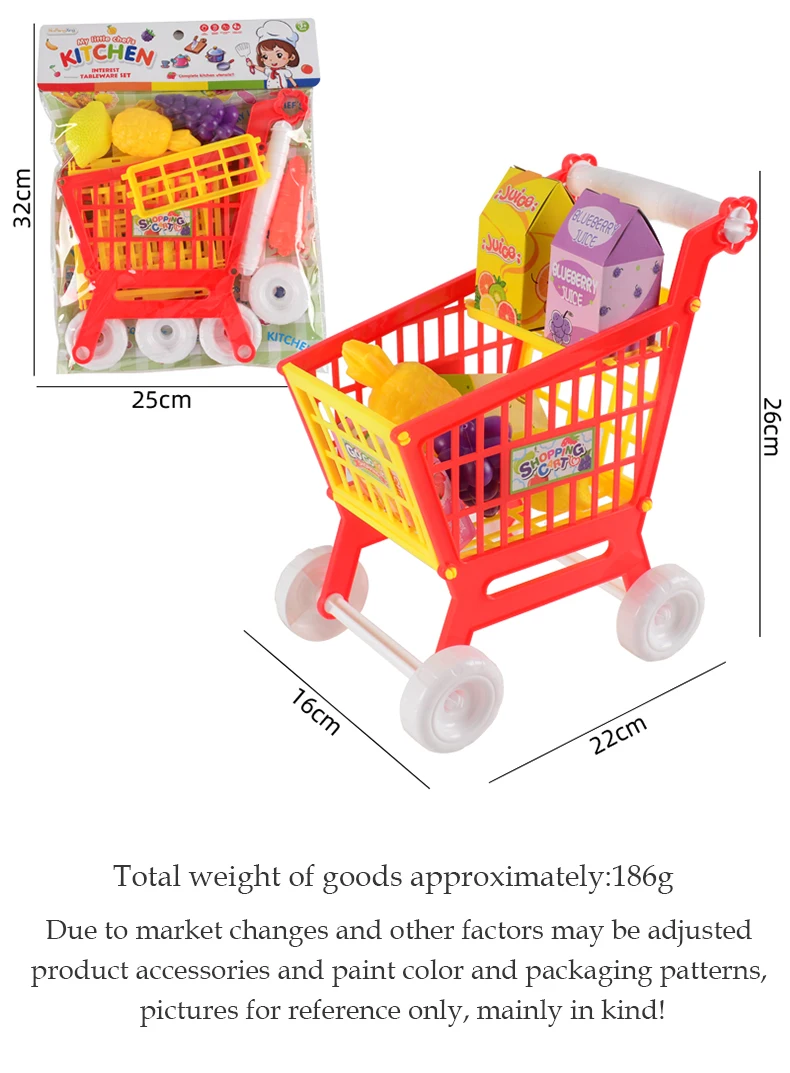 Shopping Cart Toys, Trolley for Groceries Supermarket Playset Fruit Vegetables Play Food Role Kitchen Store Toys for 3+ Kids