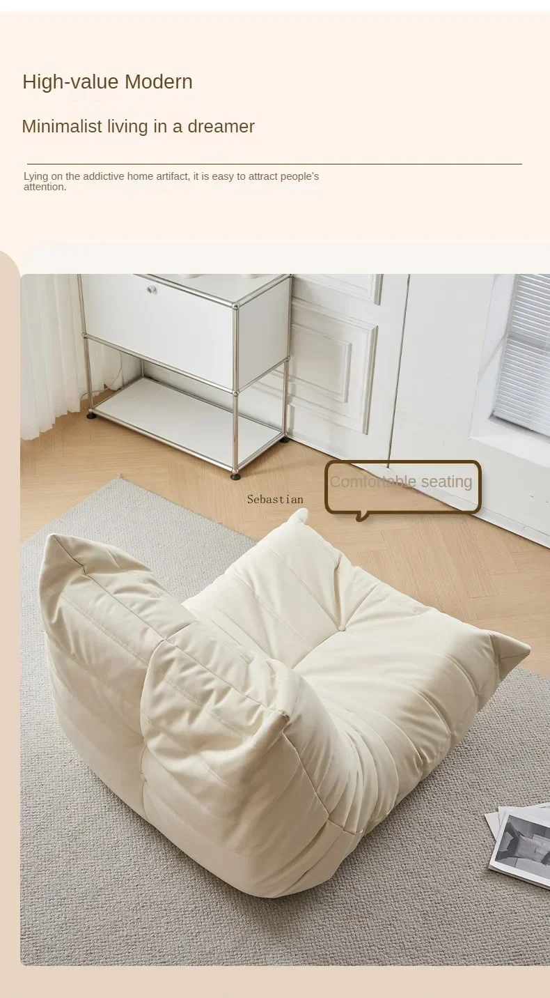 Single Casual Sofa Chair with Cat Scratch Leather Nordic Togo Lazy Caterpillar Sofa Bedroom Living Room Balcony Suede Sofa