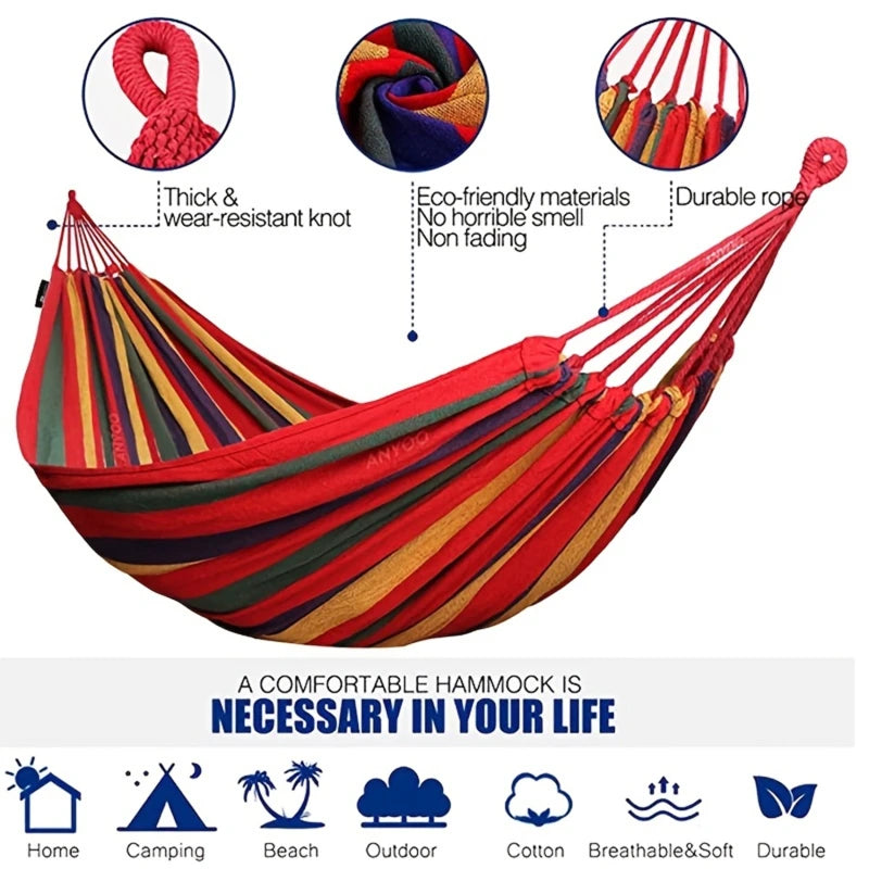 Single Wide Thick Canvas Hammock Outdoor Camping Backpackaging Leisure Swing Portable Hanging Bed Sleeping Swing Hammock