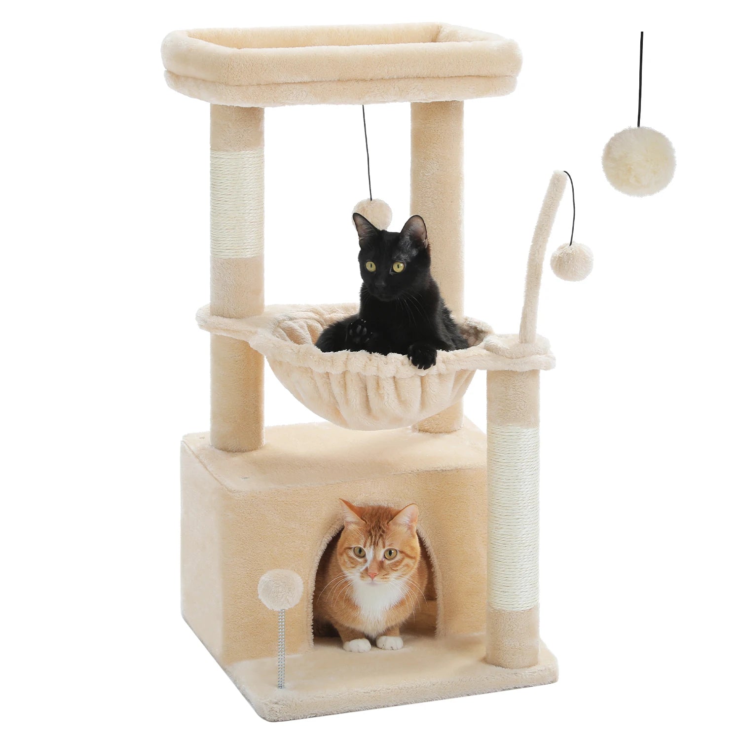 Small Cat Tree with Cozy Condo Hammock Top Perch Cat Scratching Post for Indoor Cats Multi-Level Cat Tower Cat Scratcher Kitten Toys