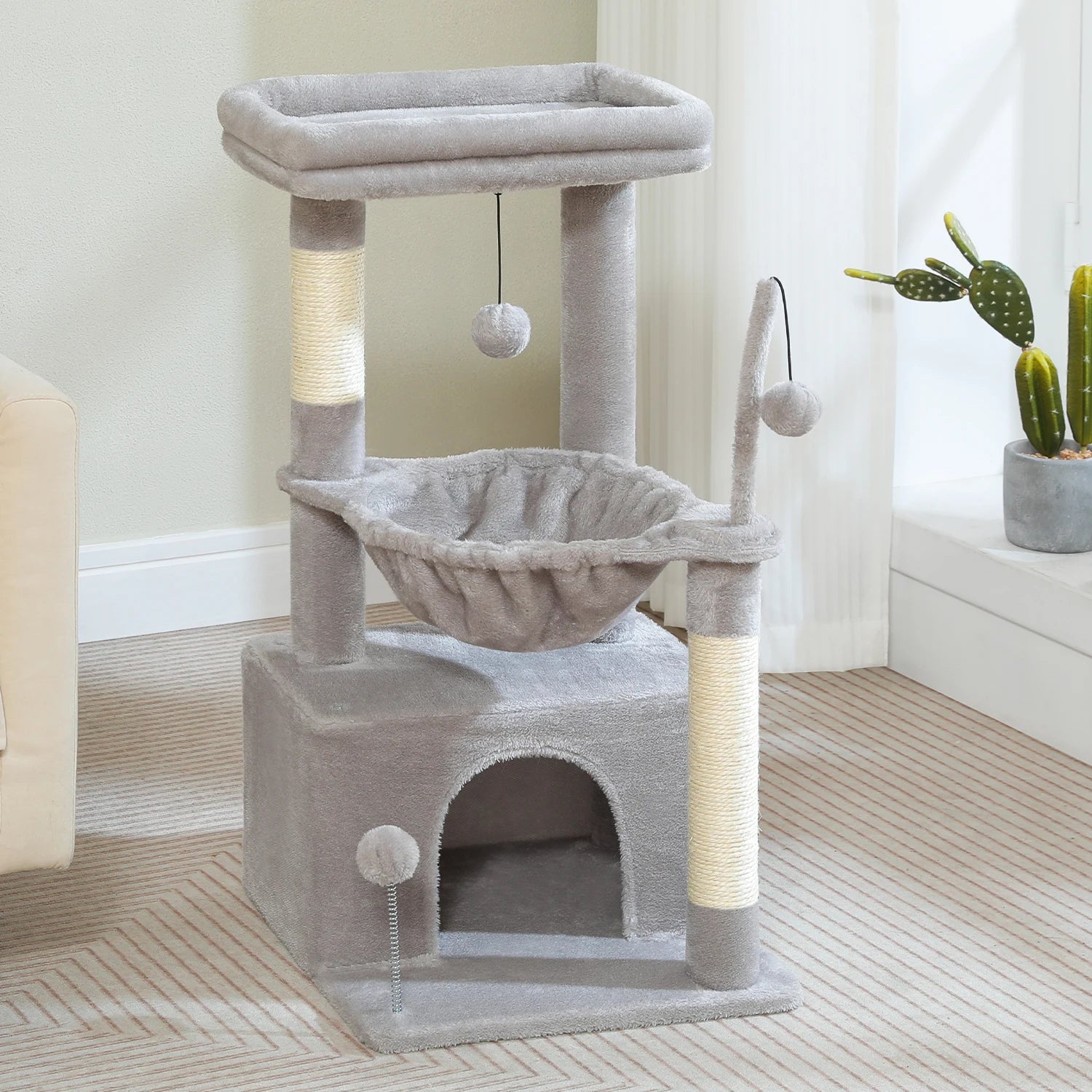 Small Cat Tree with Cozy Condo Hammock Top Perch Cat Scratching Post for Indoor Multi-Level Cat Tower Cat Scratcher Kitten Toys