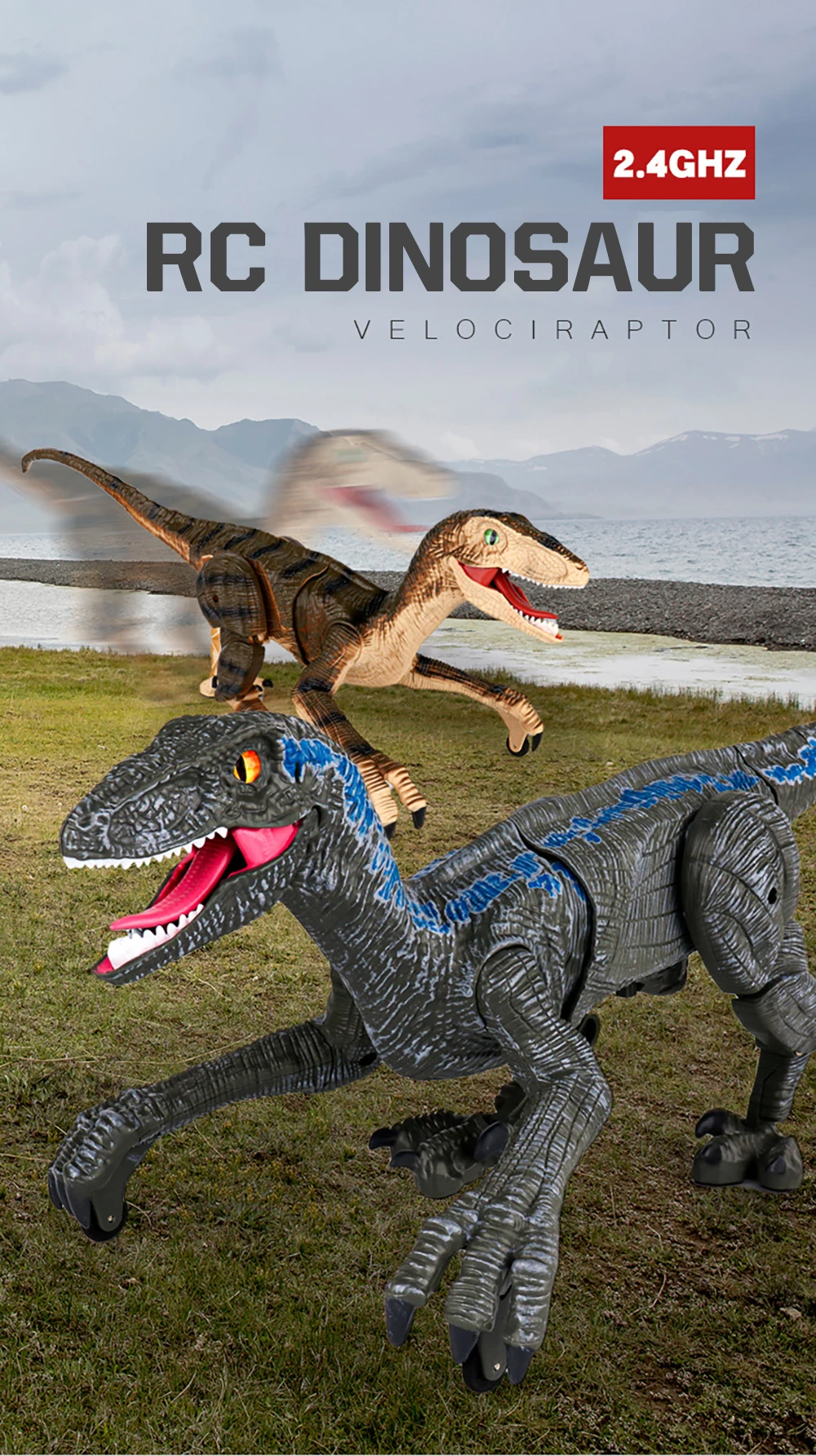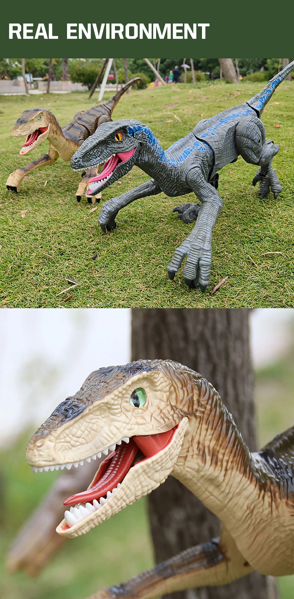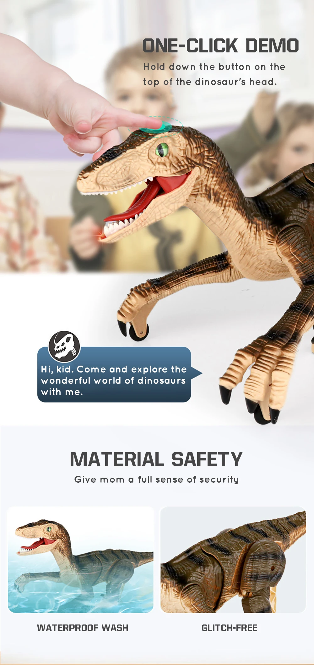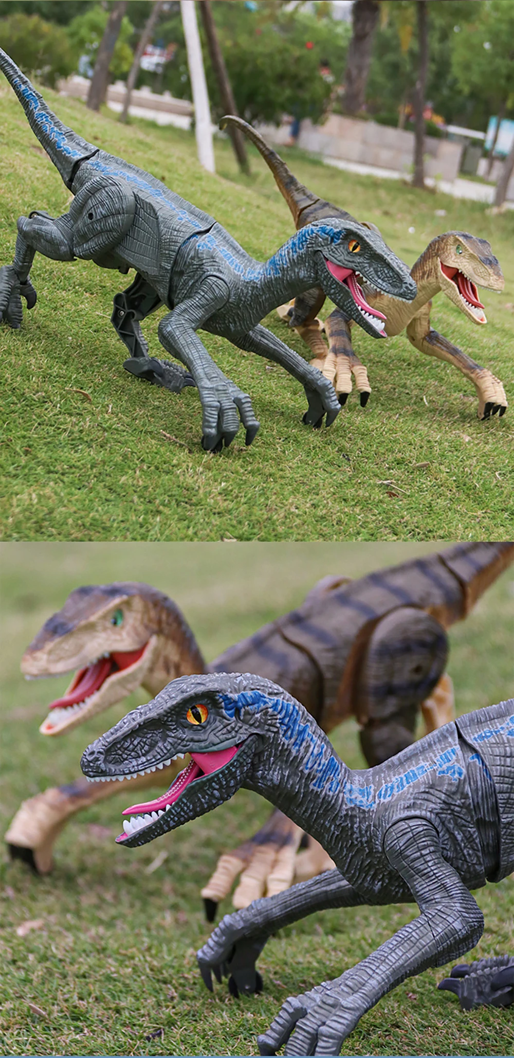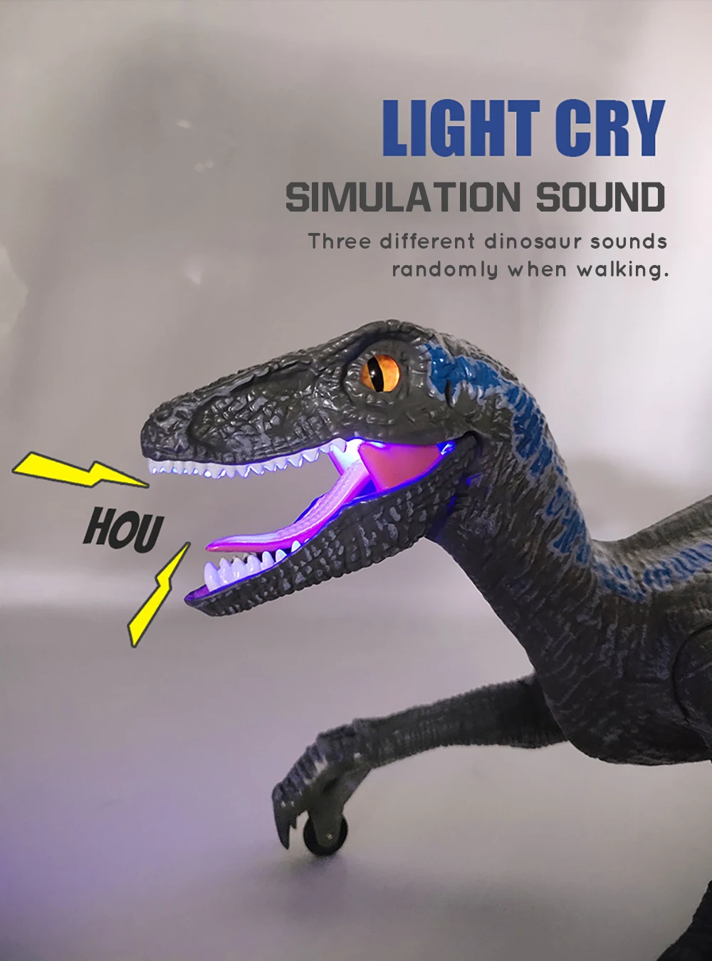 Smart RC Dinosaur 2.4G Remote Control Walking Velociraptor 5 Channel with Sound Effects LED Eyes Intelligent Toy Gift for Kids