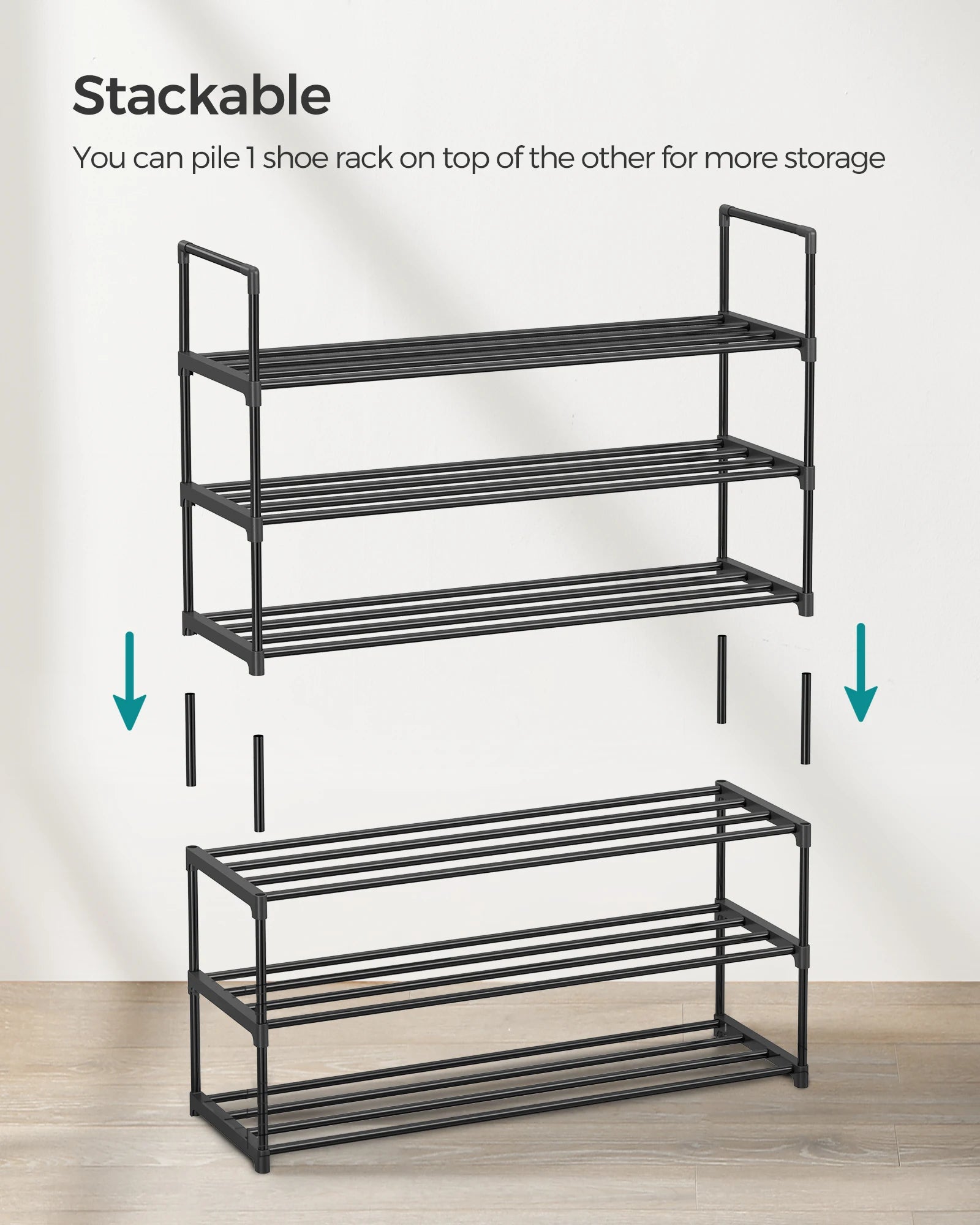 SONGMICS Shoe Rack, 3 Tier Shoe Organizer, Metal Shoe Storage Shelf for 15 Pairs of Shoes, Easy to Assemble, Entryway