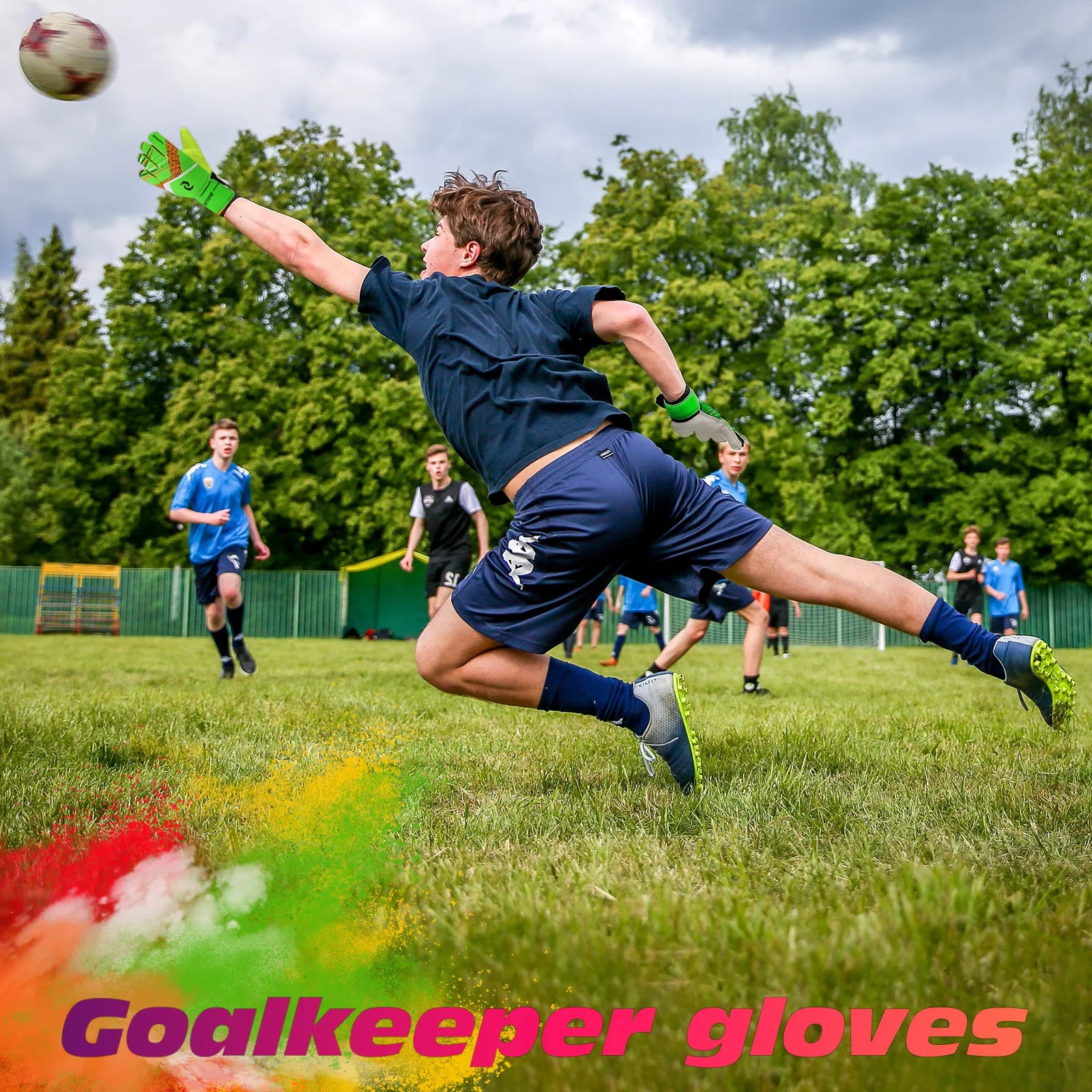 Sportout Kids Goalkeeper Gloves, Soccer Gloves with Double Wrist Protection and Non-Slip Wear Resistant Latex Material