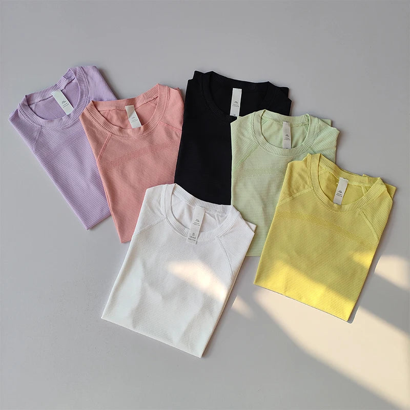 Sports Tops Quick-drying Ladies Fitness Running Yoga Short-sleeved Moisture-wicking Elastic Breathable Yoga Suit T-shirt
