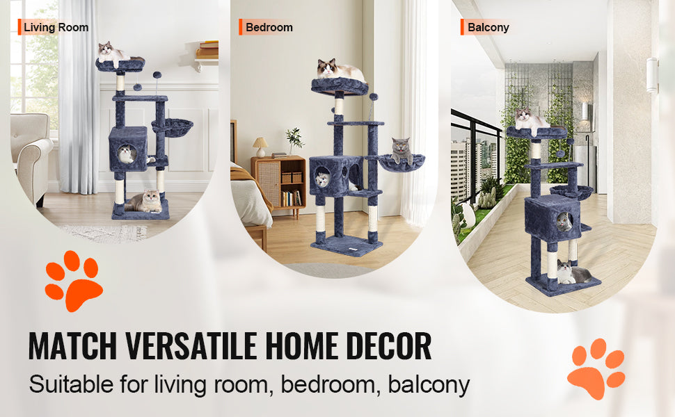 Easy Installation: Pre-drilled holes make installation effortless. Our cat tree for indoor cats comes with detailed assembly instructions and all necessary screws, bolts, wrench, and expansion screw kits. Even first-time users of pet furniture can easily complete the setup, saving time and effort.