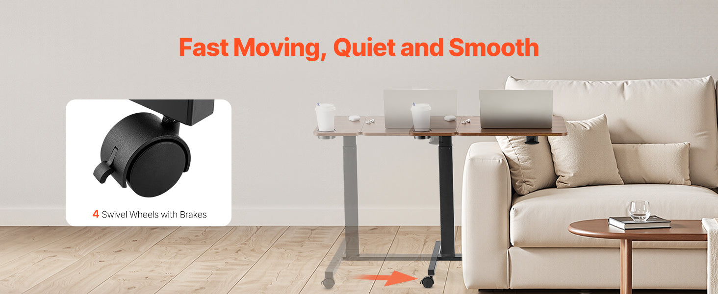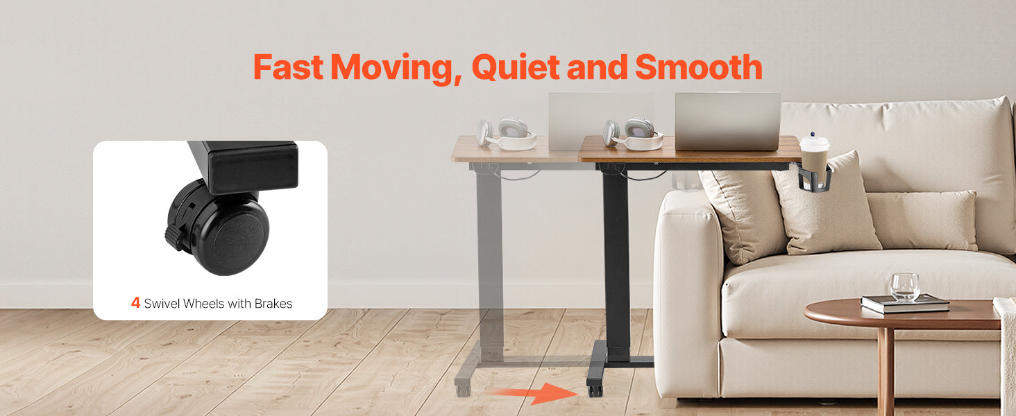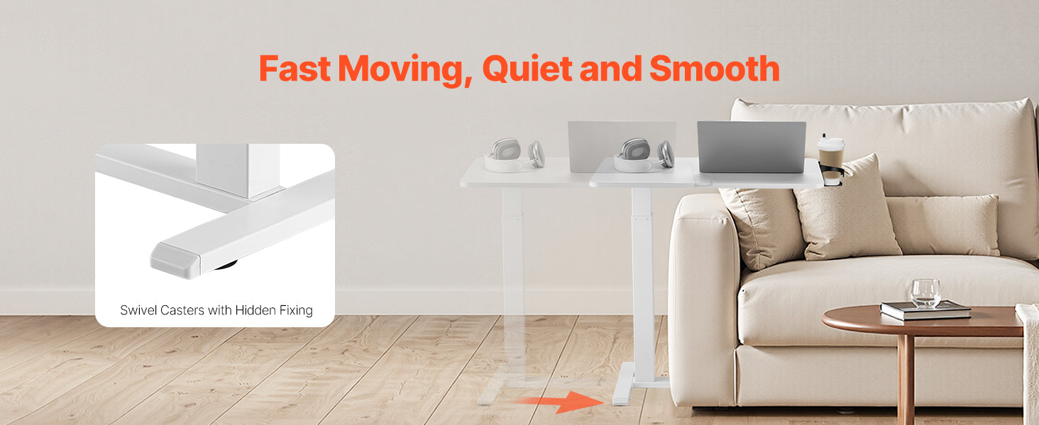 Easy to Move: Four smooth caster wheels (two with brakes) make it a breeze to move this bedside table. The H-shaped base easily slides under your furniture to save your space. Whether you're working from home or need a portable workstation, this table is the ideal fit.