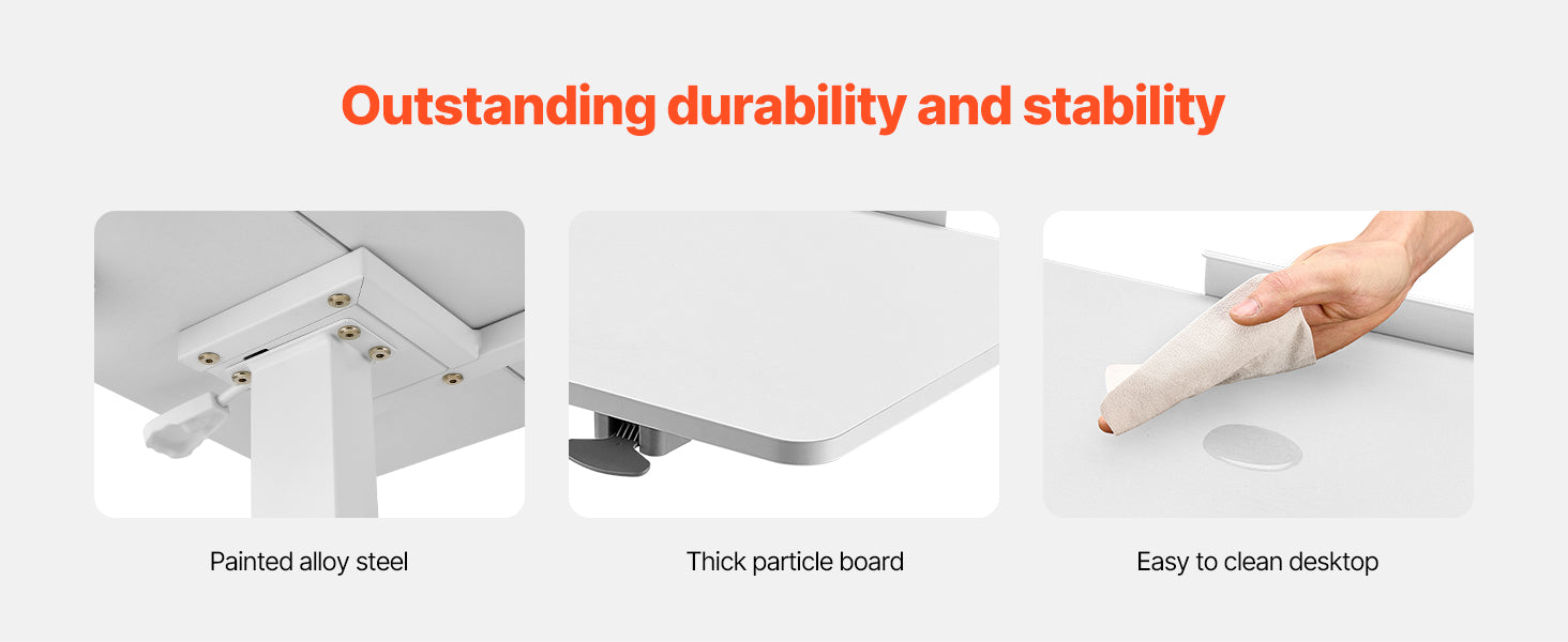 Premium Materials: Built with strong powder-coated steel and thickened particleboard, this table can hold up to 66 lbs / 30 kg near the column and 22 lbs / 10 kg on the tabletop edge.