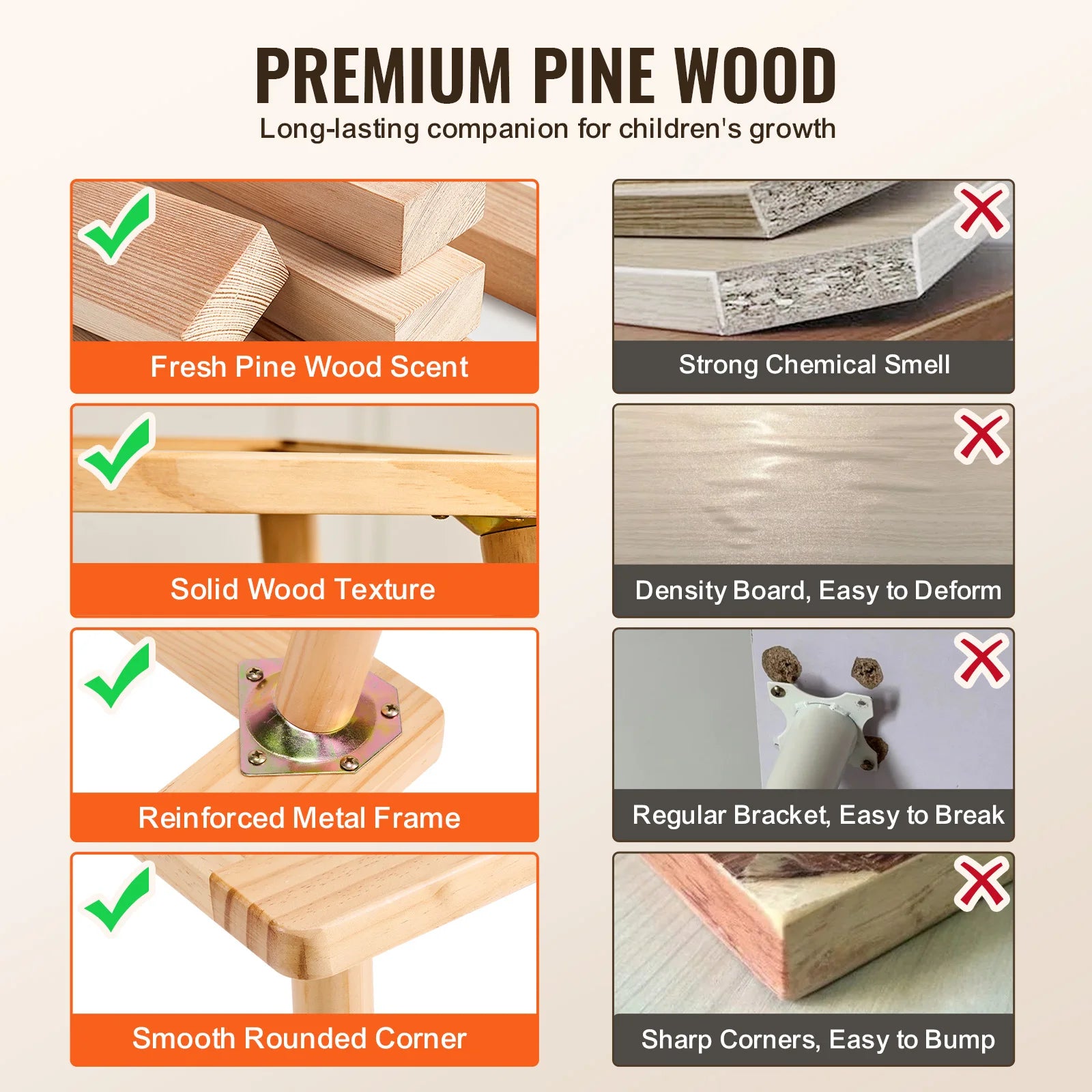 Durable Natural Pine Wood Construction