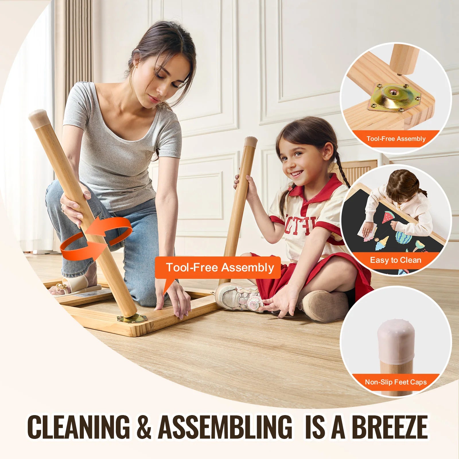 Quick Assembly and Easy Maintenance: Assembling the table is hassle-free, requiring no tools—just attach the legs. The non-slip foot caps protect your floors from scratches, while the smooth surface can be quickly wiped down with a damp cloth for easy cleanup after creative sessions.