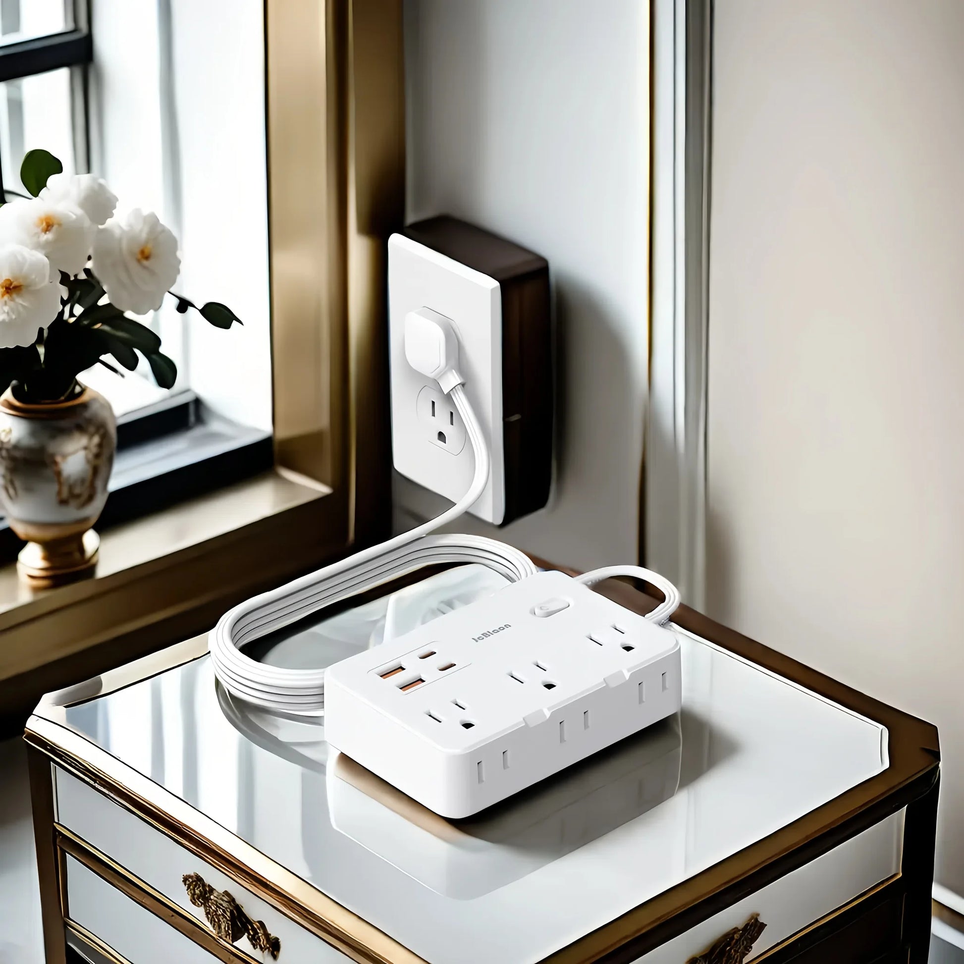 Surge Protector Ultra Thin Flat US Plug with 6 Widely Outlets 4 USB Ports,5ft Extender Cable,Power Strip Adapter for Home Office