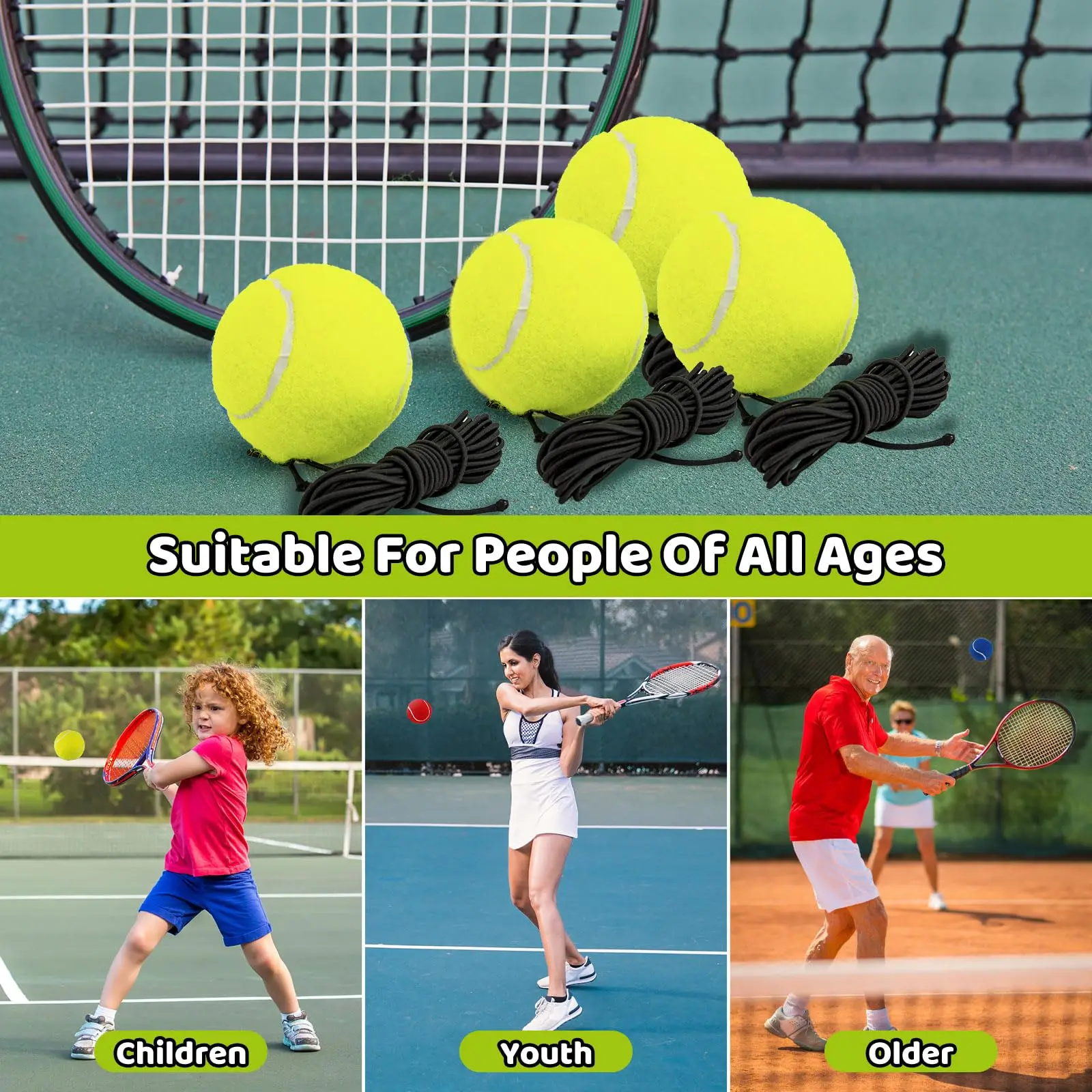 Convenient to Use: The tennis ball with string is specially designed for single practice tennis training , it needs to be used in conjunction with a tennis trainer tool .They're easy to use, don't spend time picking up balls, and improve your training efficiency