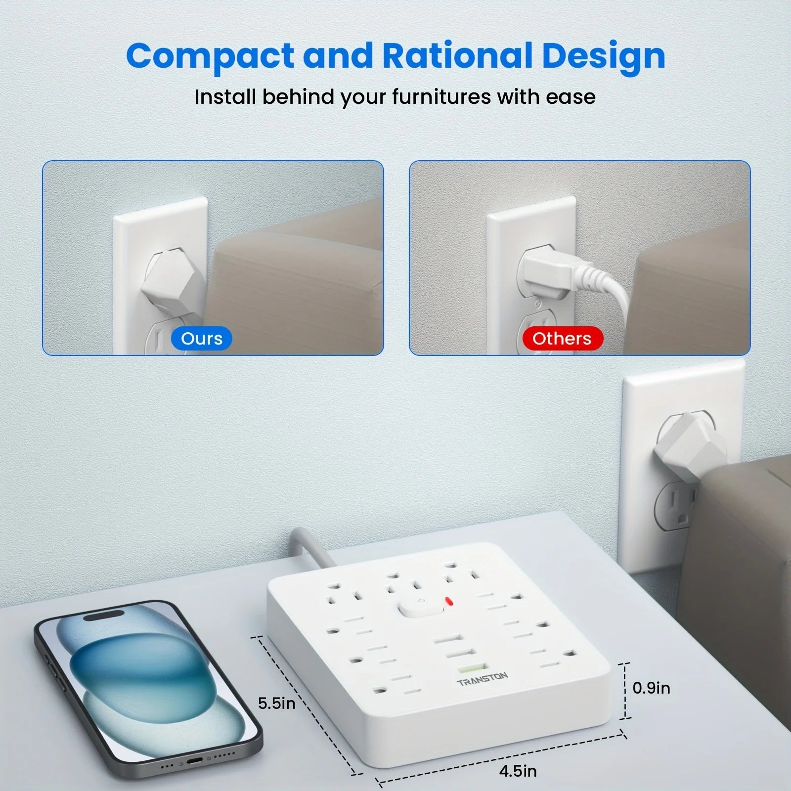 1. TRANSTON power strip with surge protector, 9power strip, 3 USB strip