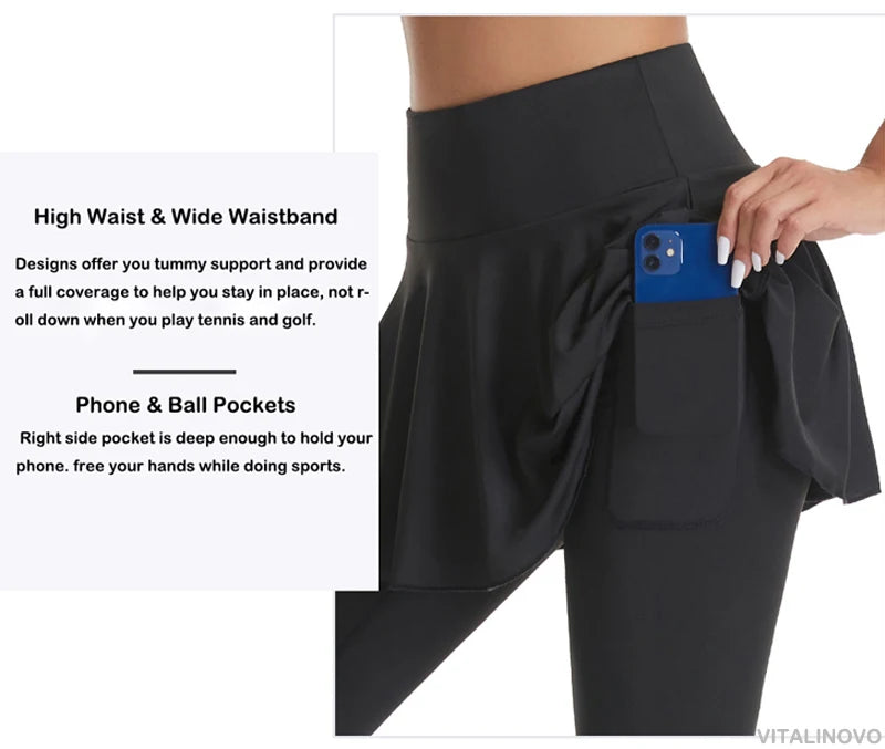 VITALINOVO Tennis Skirted Leggings with Pocket for Women High Waisted Active Skort Active Ruffle Pleated Golf Skapri with Skirt