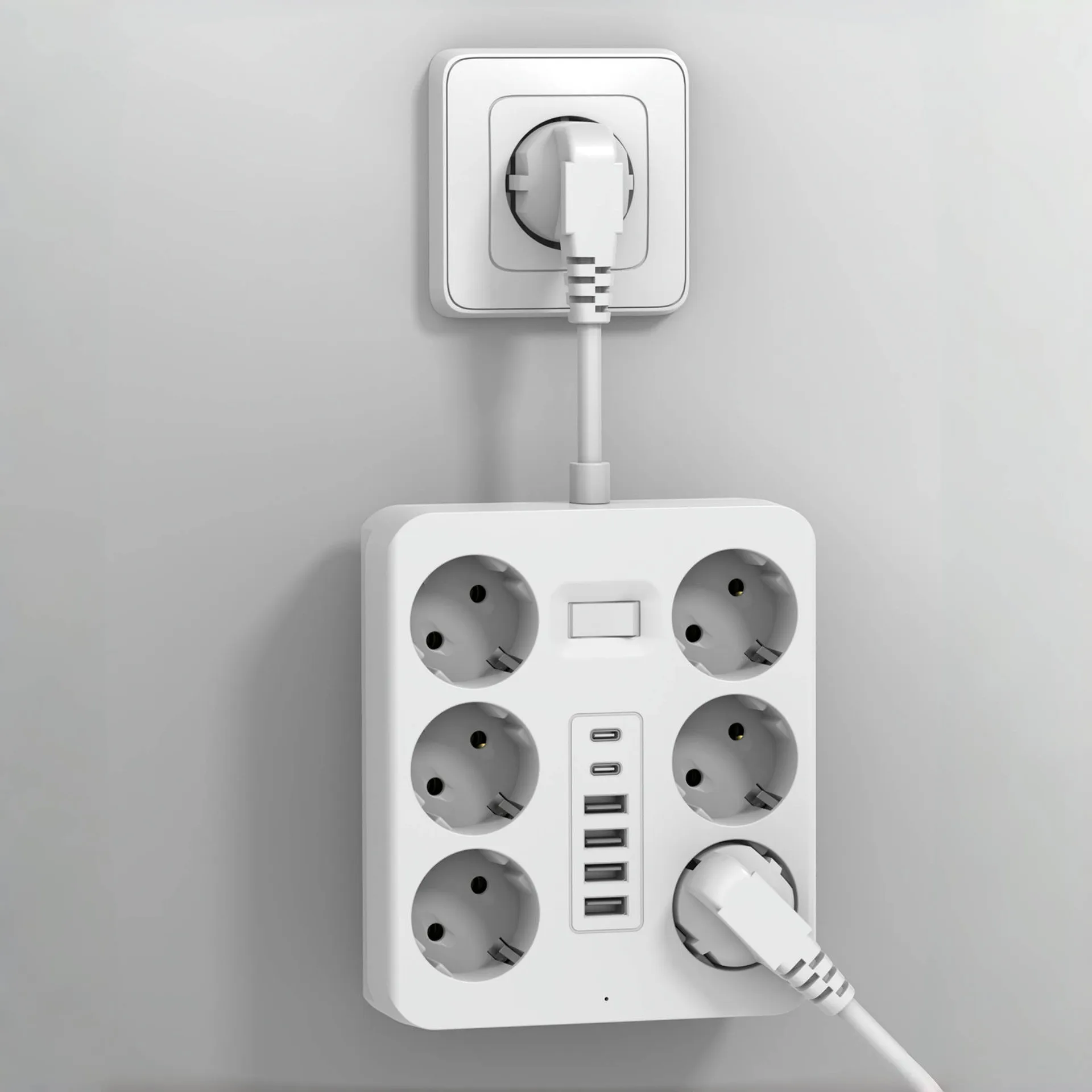 Wall Socket Extender with 6 AC Outlets 4 USB Ports 2 Type-C EU Plug Charger Electrical Switch For Home Power Strip Socket
