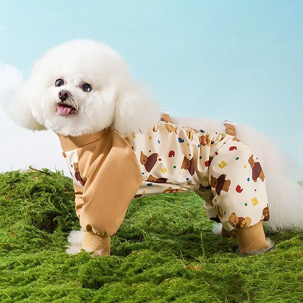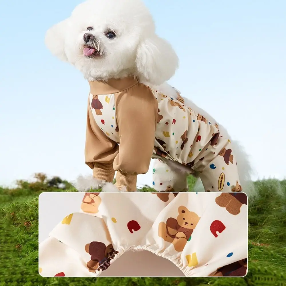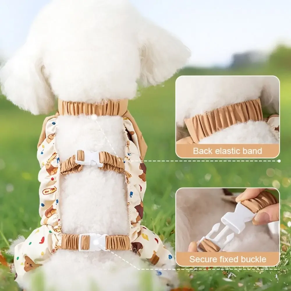 Waterproof Pet Strolling Going Out Pants Back Elastic Band Cartoon Dog Four Legged Pants S~XXL Dust-proof Dog Leggings