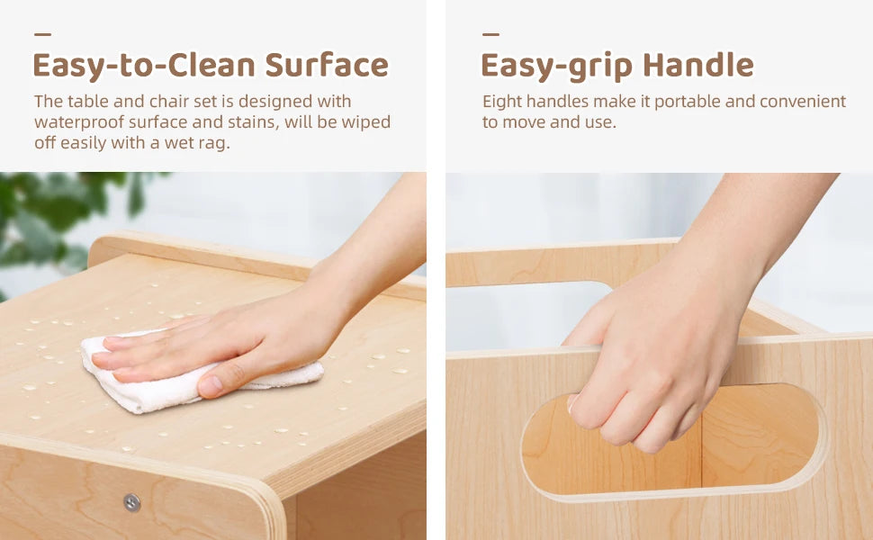 Weaning Table and Chair Set, Kids Activity Table and Chair Set with Fence for Read, Play Toys, Snack Time, Step Stool