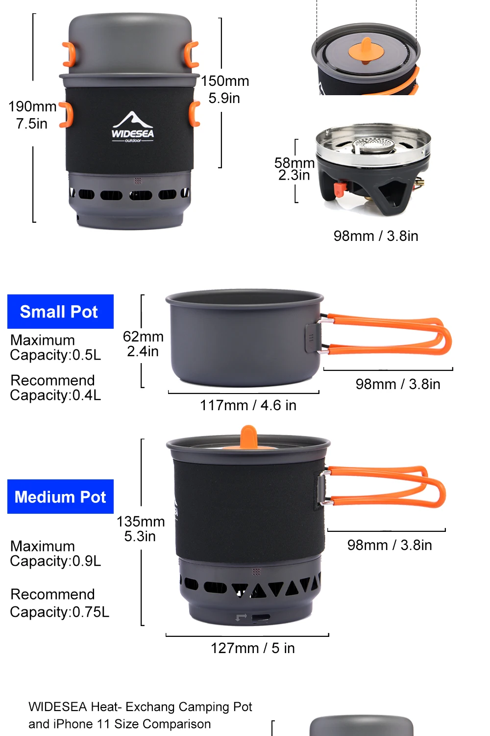 Widesea Camping Cooking System with Heat Exchanger Outdoor Gas Burner Stove Tourist Pot Set Cup Tableware Cookware Tourism Hike