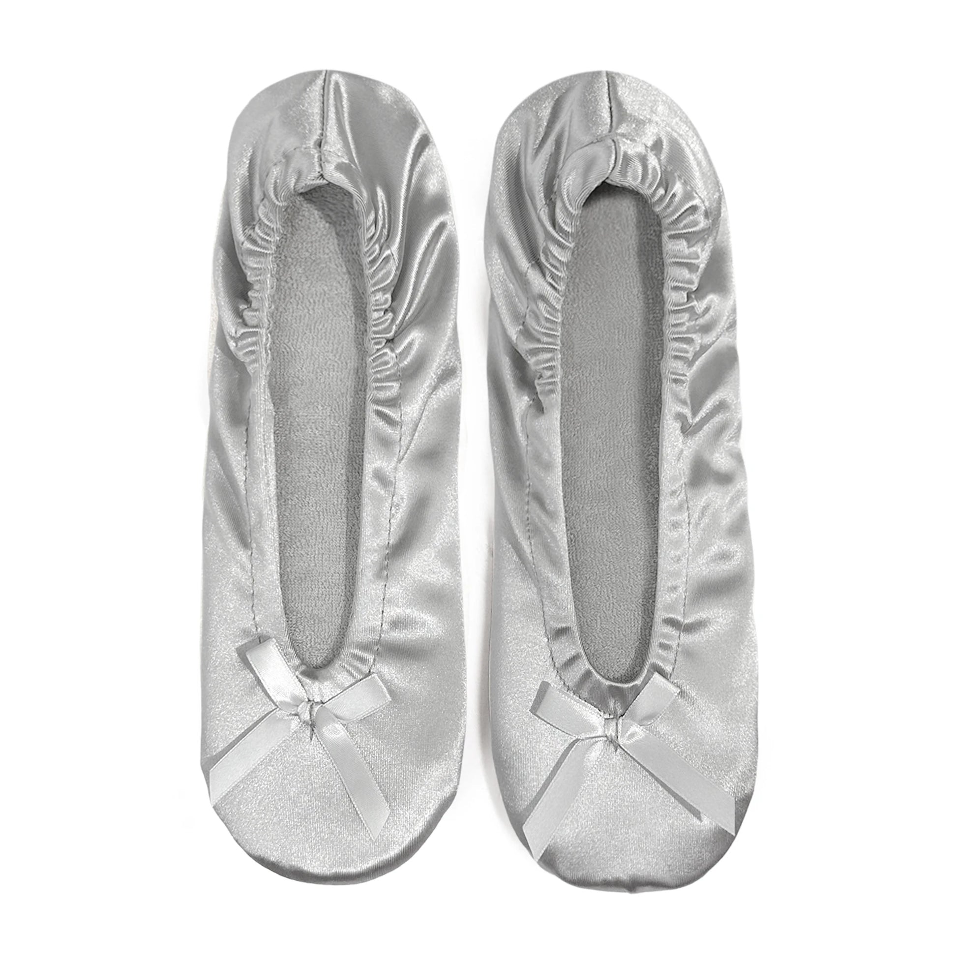These women's ballet flats are designed for indoor wear. They feature a low-cut, rounded toe and a bow knot detail at the vamp. The upper is fabric, and a soft foam insole provides light cushioning for casual, everyday use. The outsole material is not specified, and the overall construction emphasizes a lightweight, slip-on silhouette suitable for home, office, or other indoor settings. The pair is not waterproof.