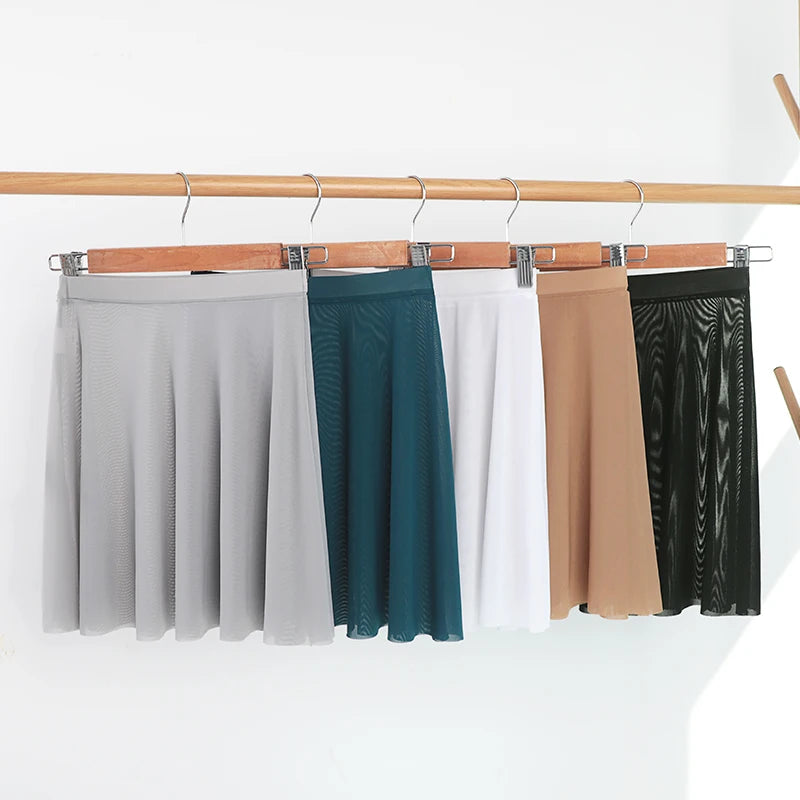 Adult Ballet Skirt Women Soft Breathable Mesh Elastic Waist Skirts Gymnastics Training Dancewear