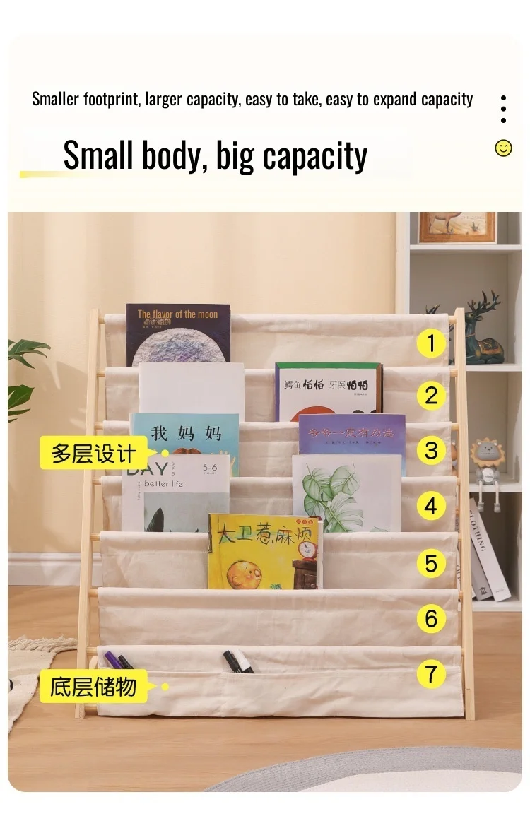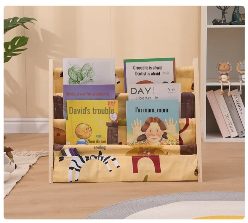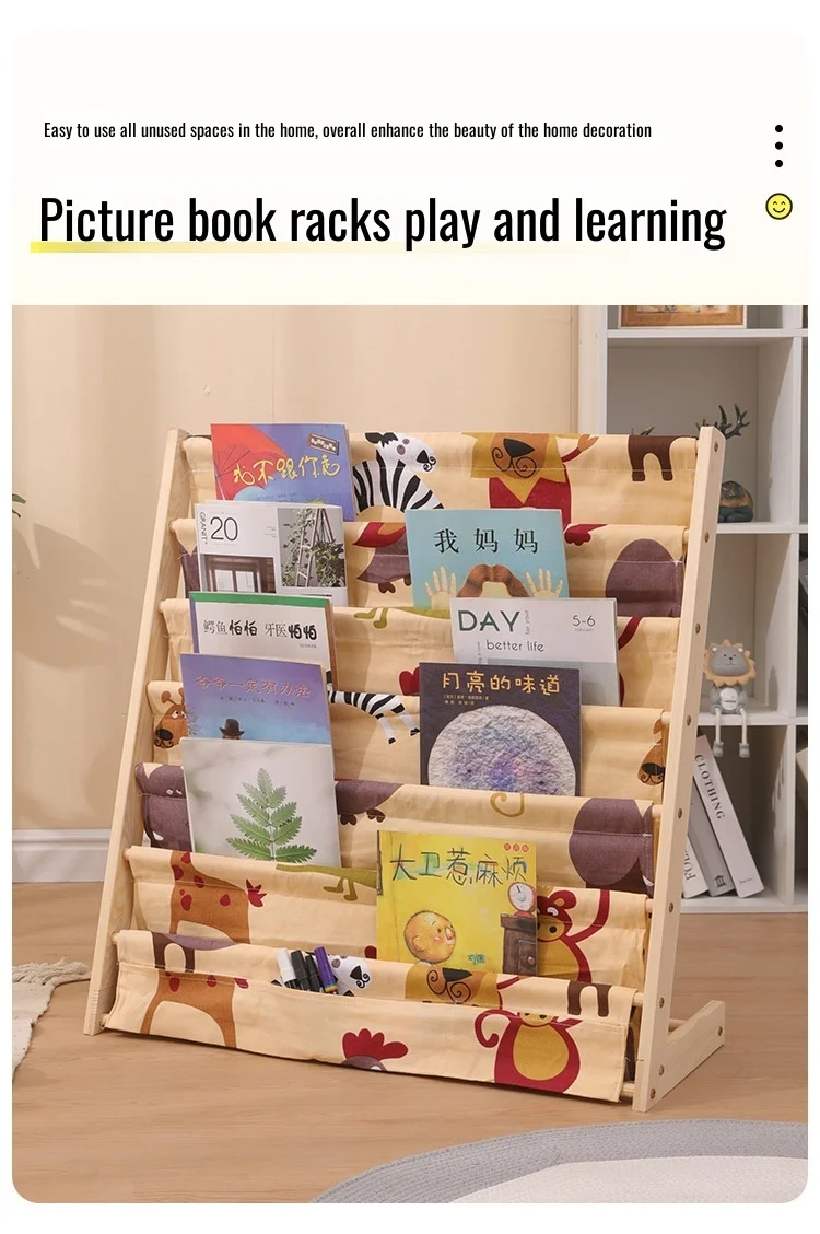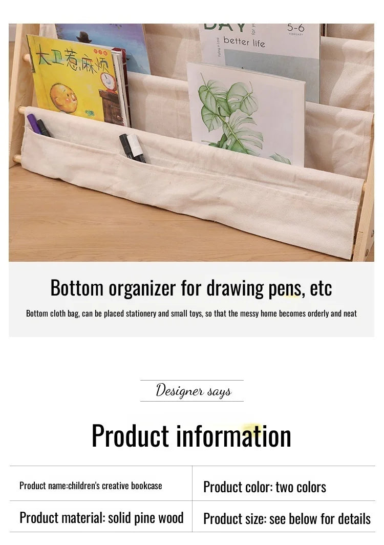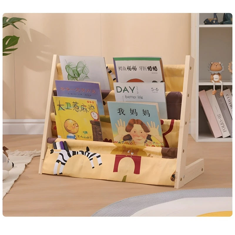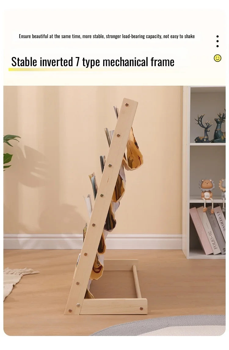 Wooden Movable Kids Bookshelf Multi-Layer Storage Bookcase Floor Standing Reading Shelf for Children's Books & Toys
