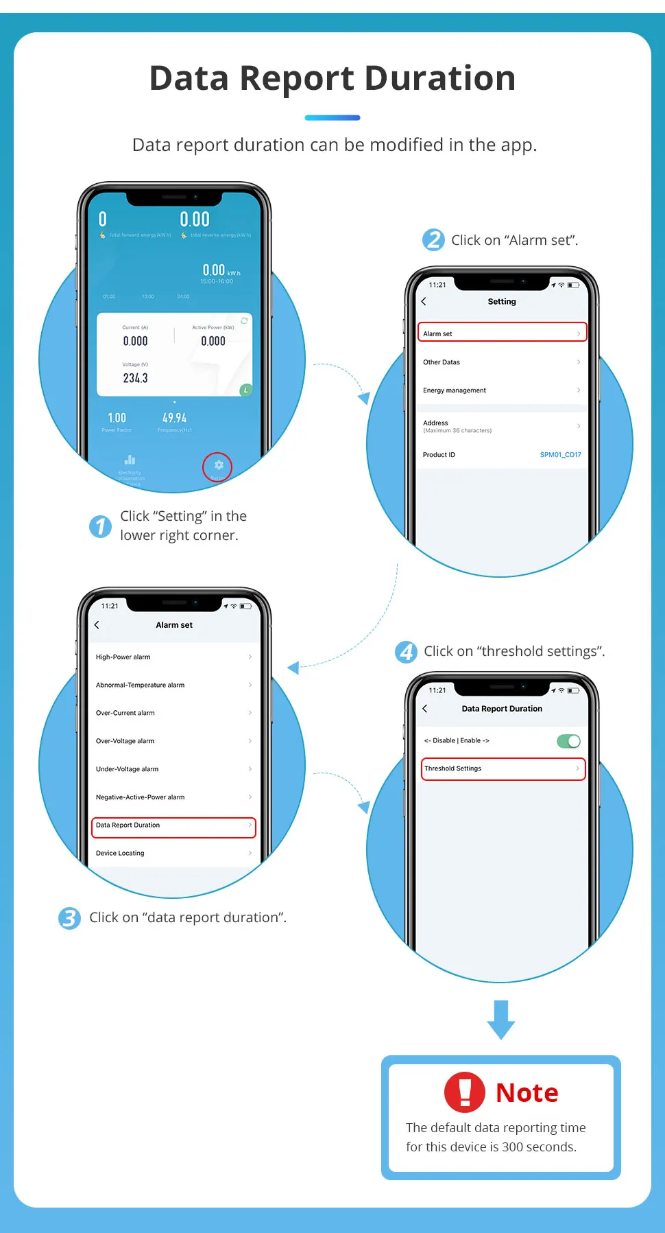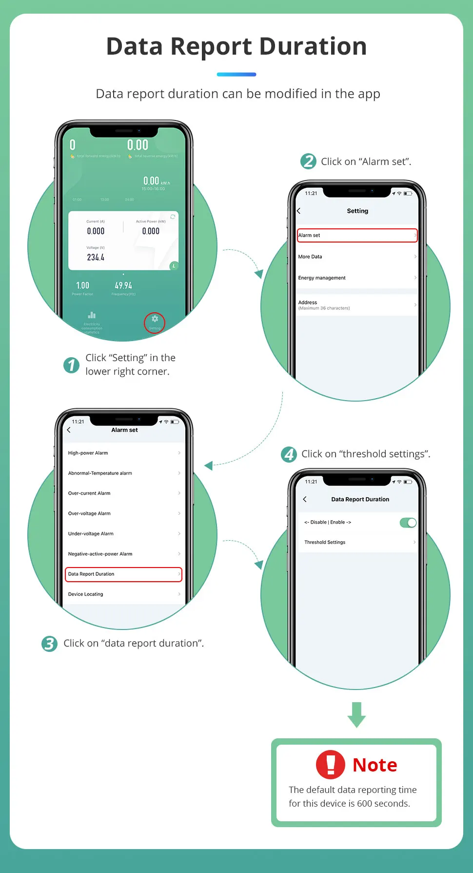 - The default data reporting time for Zigbee Version is 600 seconds, and for WiFi Version is 300 seconds.