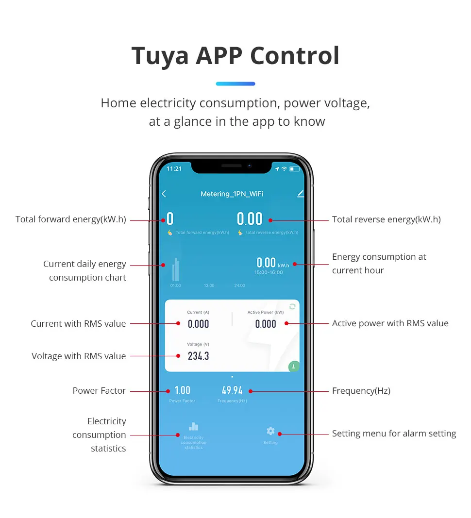 - Energy measurement: Accumulated energy, Hourly /Daily /Monthly energy