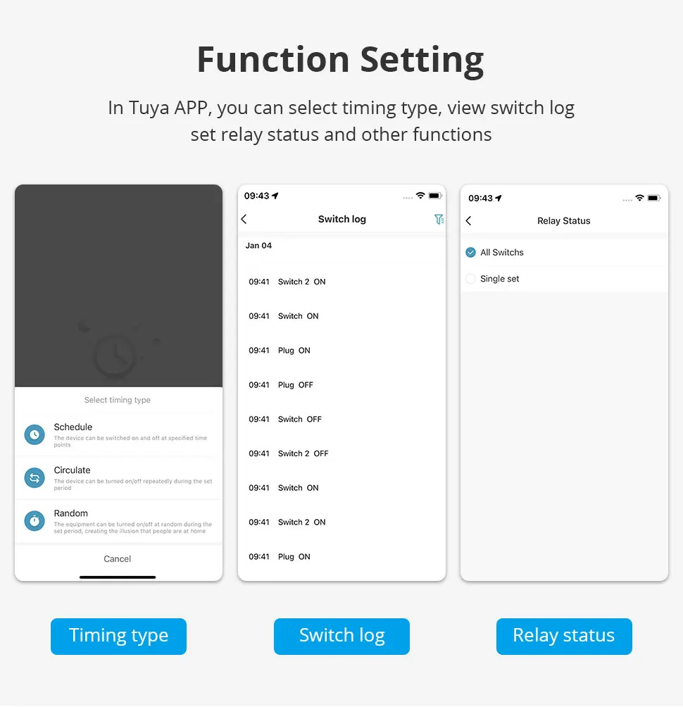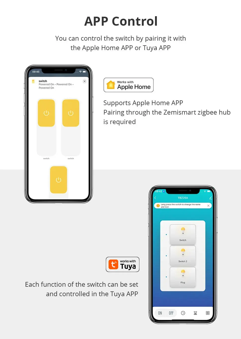 - Use popular smart Life and Tuya android/ios apps. Like Alexa, Echo and Google Home, making life easier. Even if you are not at home, you can use the mobile app to remotely control the devices from anywhere and control the lights on/off at any time.