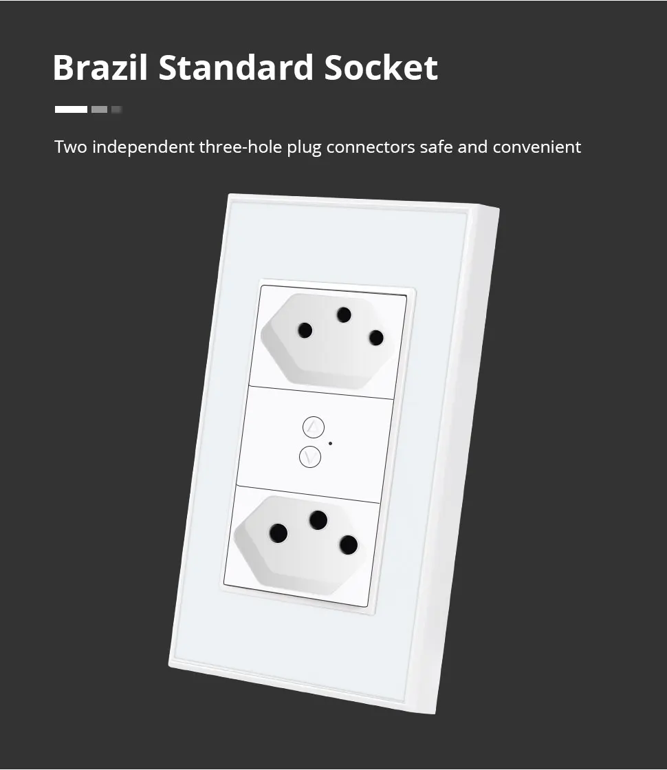 - Sleek design controllable from anywhere. Smart Brazilian wall socket is a kind of energy saving socket. Not only can use your devices but also your phone charging. Dual-purpose socket is a good choice for you!